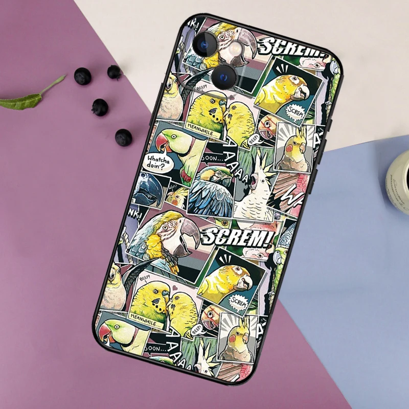 Funda de pájaro loro Animal para iPhone 14, 13, 11, 12, 16, 15 Pro Max, 12, 13 Mini, X, XR, XS MAX, 7, 8, 14, 16, 15 Plus, cubierta trasera