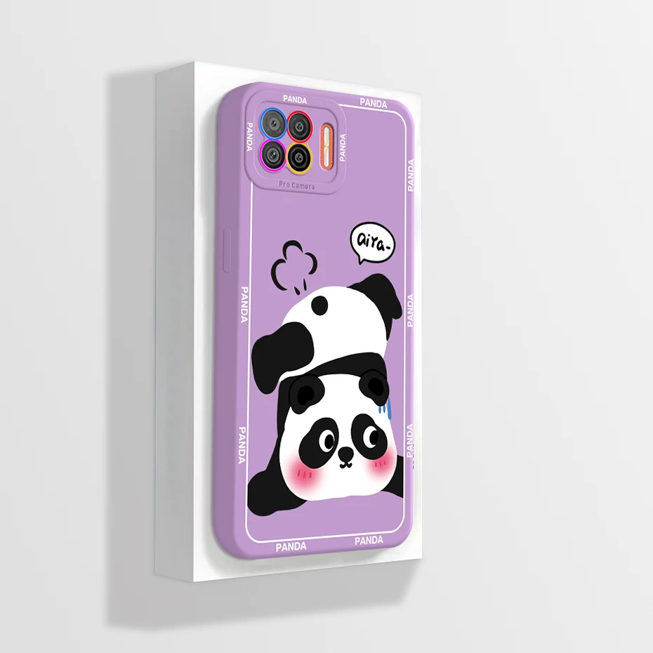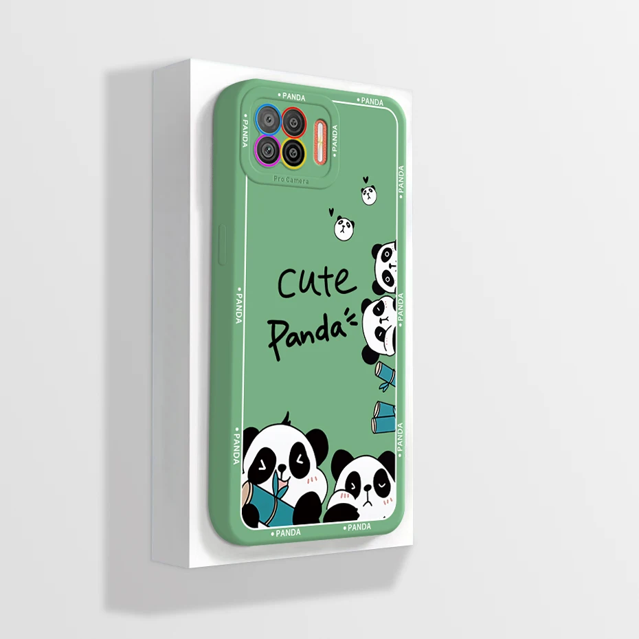 Comprar Funda de Panda para OPPO Reno 4 lite, carcasa trasera de silicona líquida para OPPO F17 Pro, Funda de teléfono para OPPO A73 2020 4G A93