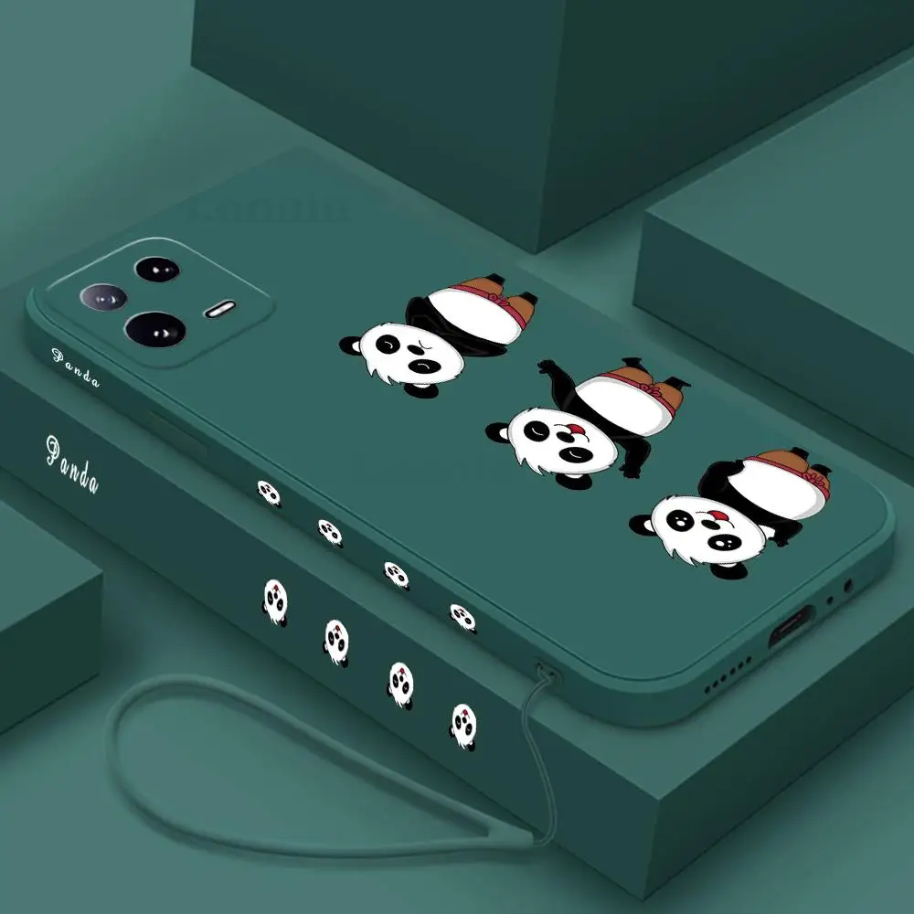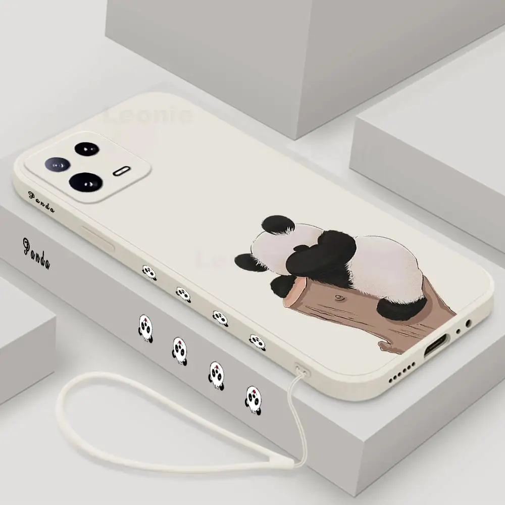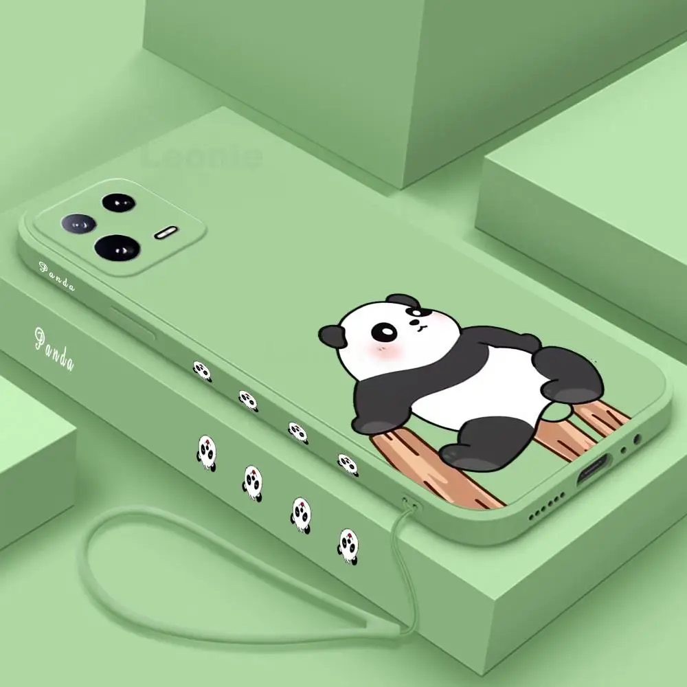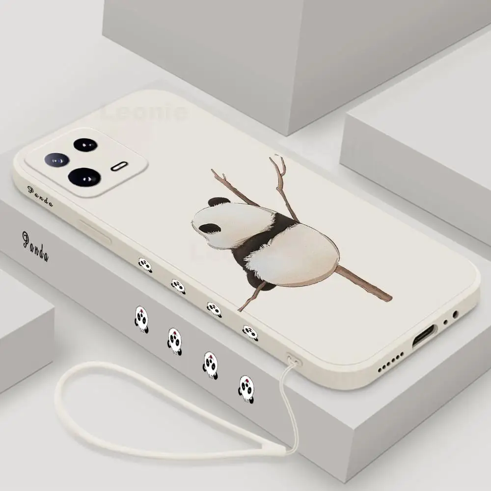 Panda Case For Xiaomi 13 Pro Lite 12T 11T Pro Mi 11 12 Lite 12x 11 Ultra 12 Pro Skin Liquid Silicone Phone Cover with Lanyard