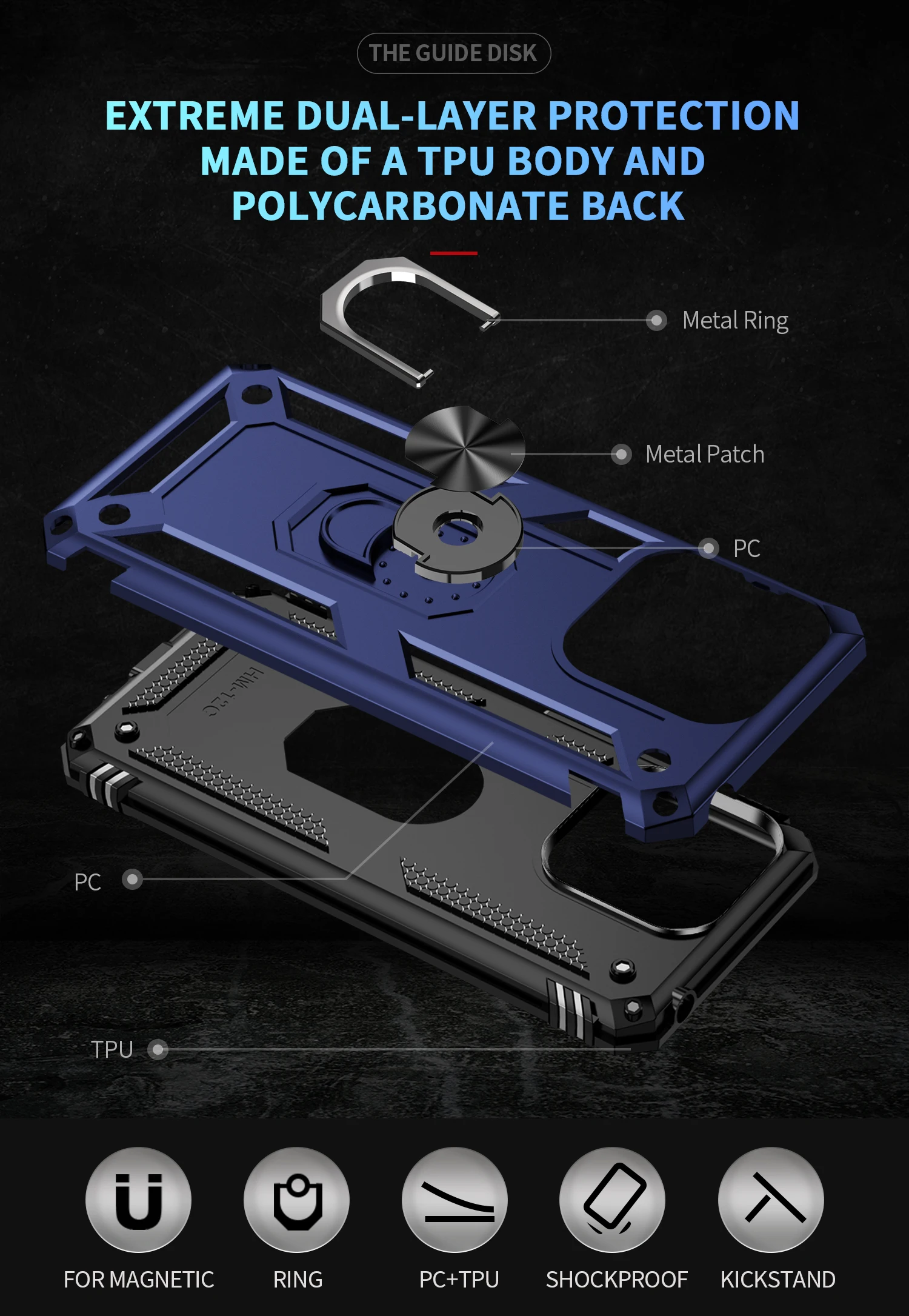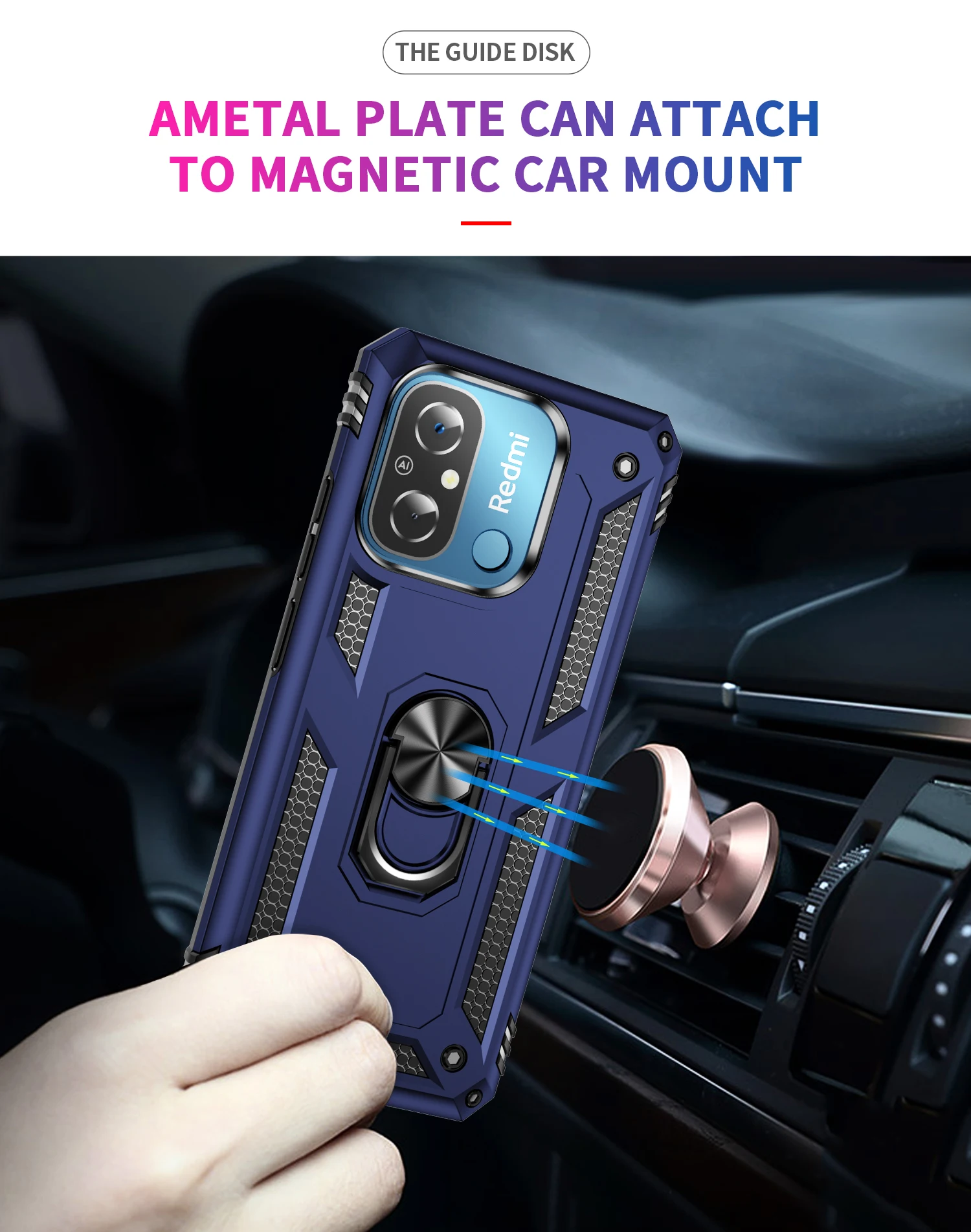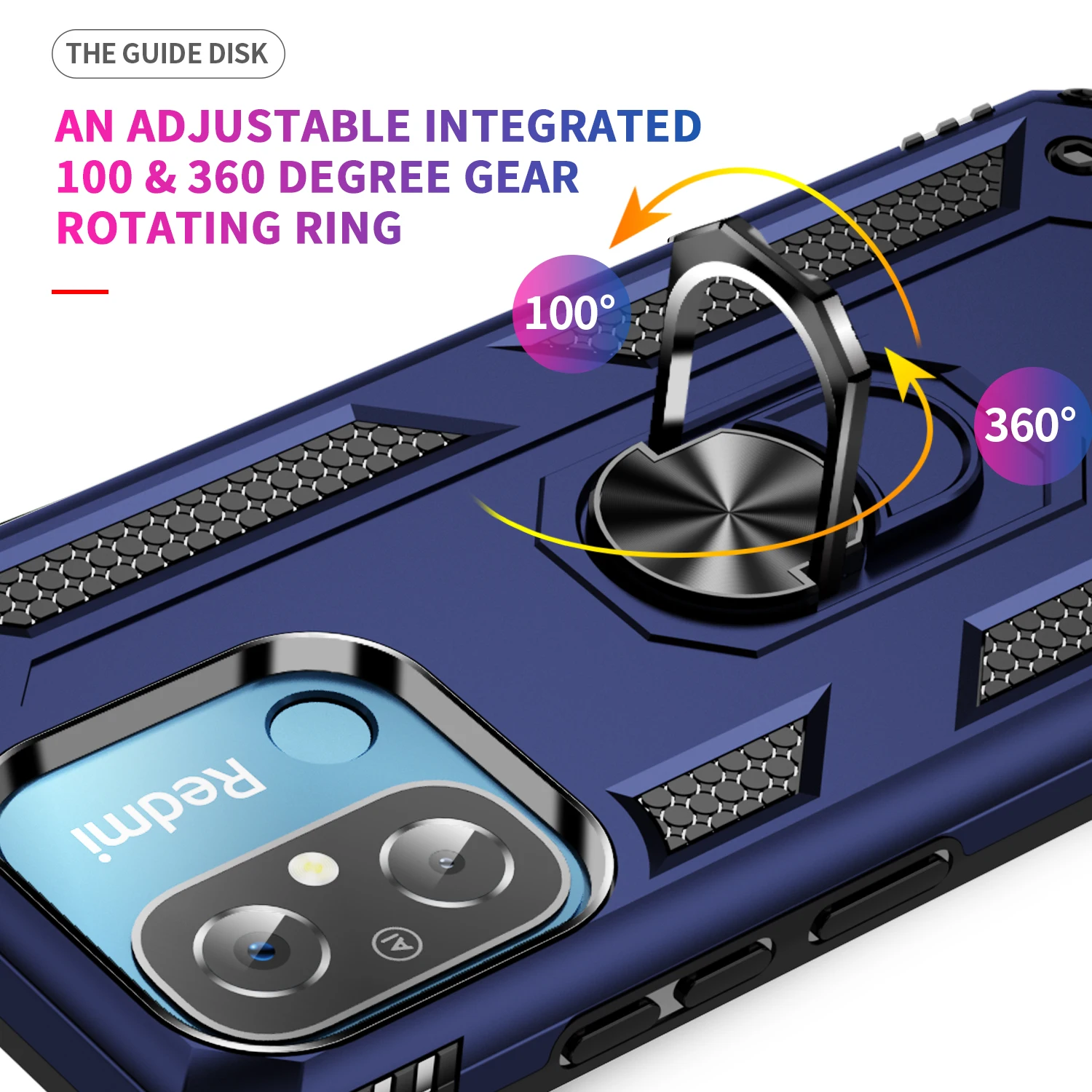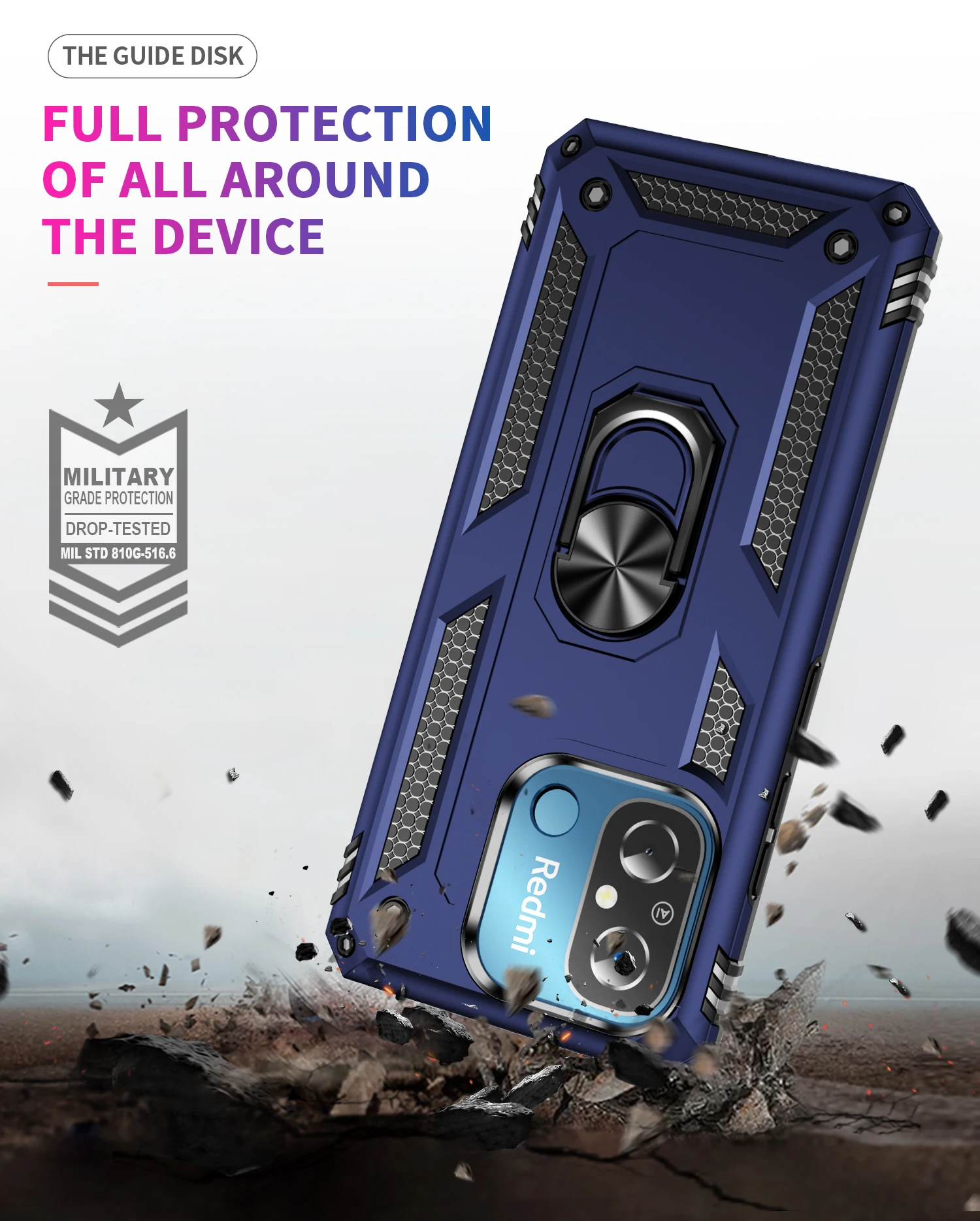 Funda de parachoques de armadura a prueba de golpes para Xiaomi Redmi Note 12 11 10 Prime 9 Pro Max 11S 11T 10T 9T 10C 9S 10S 5G 9A 9C funda con anillo de Metal