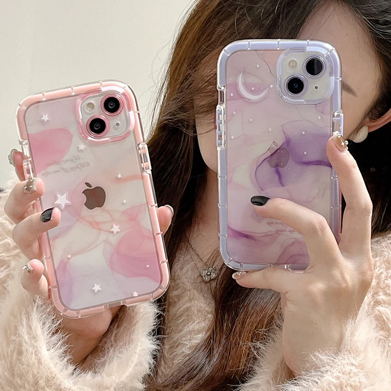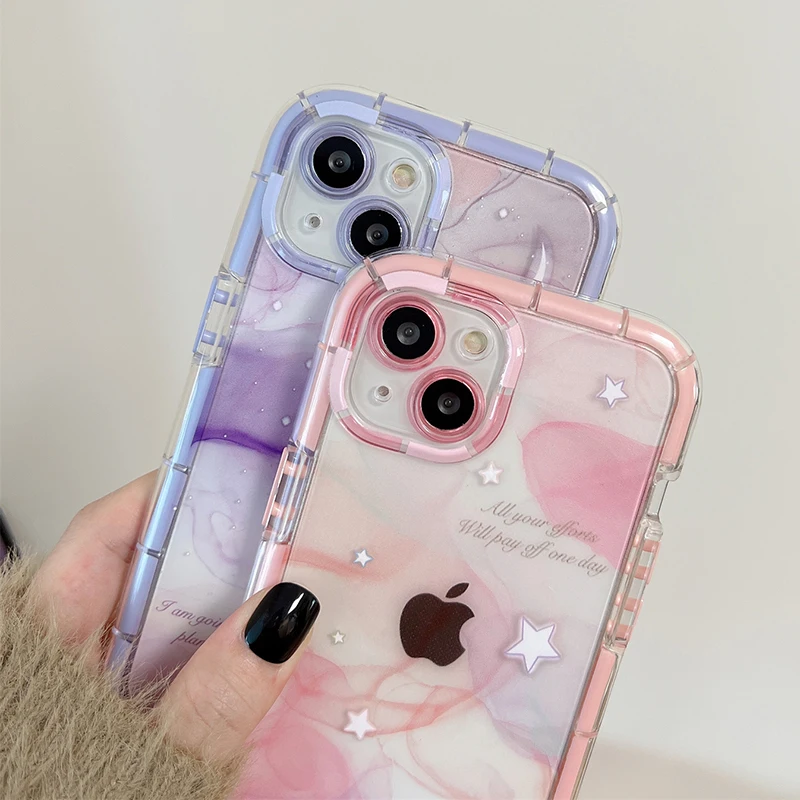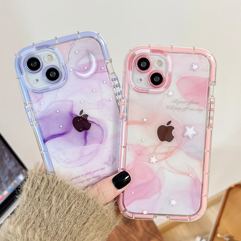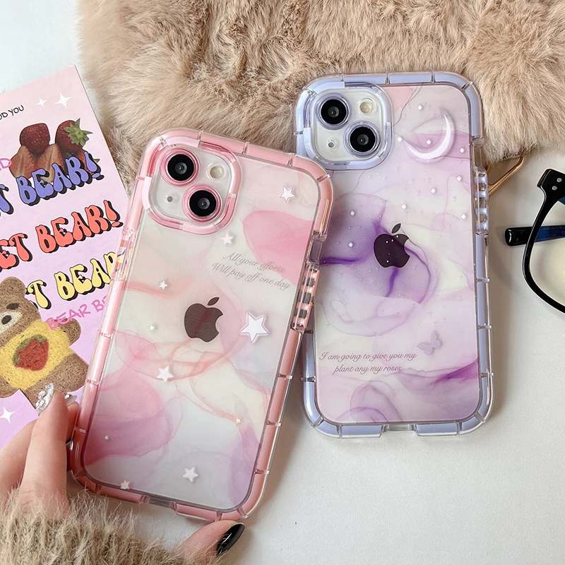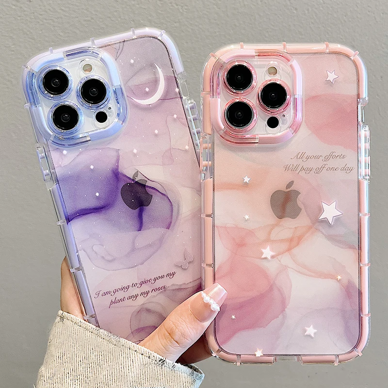 Funda protectora luminosa rosa púrpura Dream Starry Sky para iPhone 11 12 13 14 15 Pro Max XS XR X 14 Plus, funda transparente a prueba de golpes
