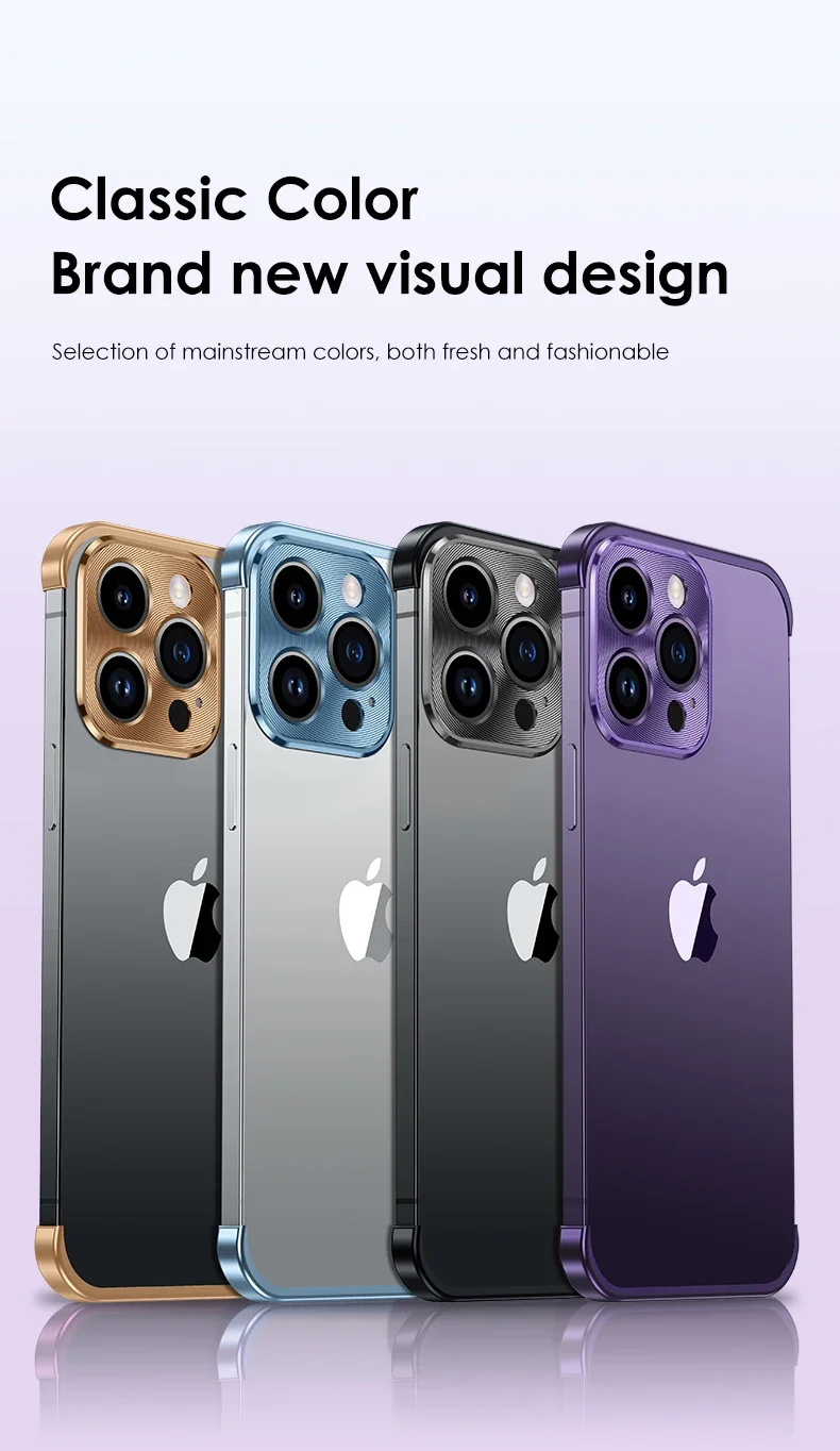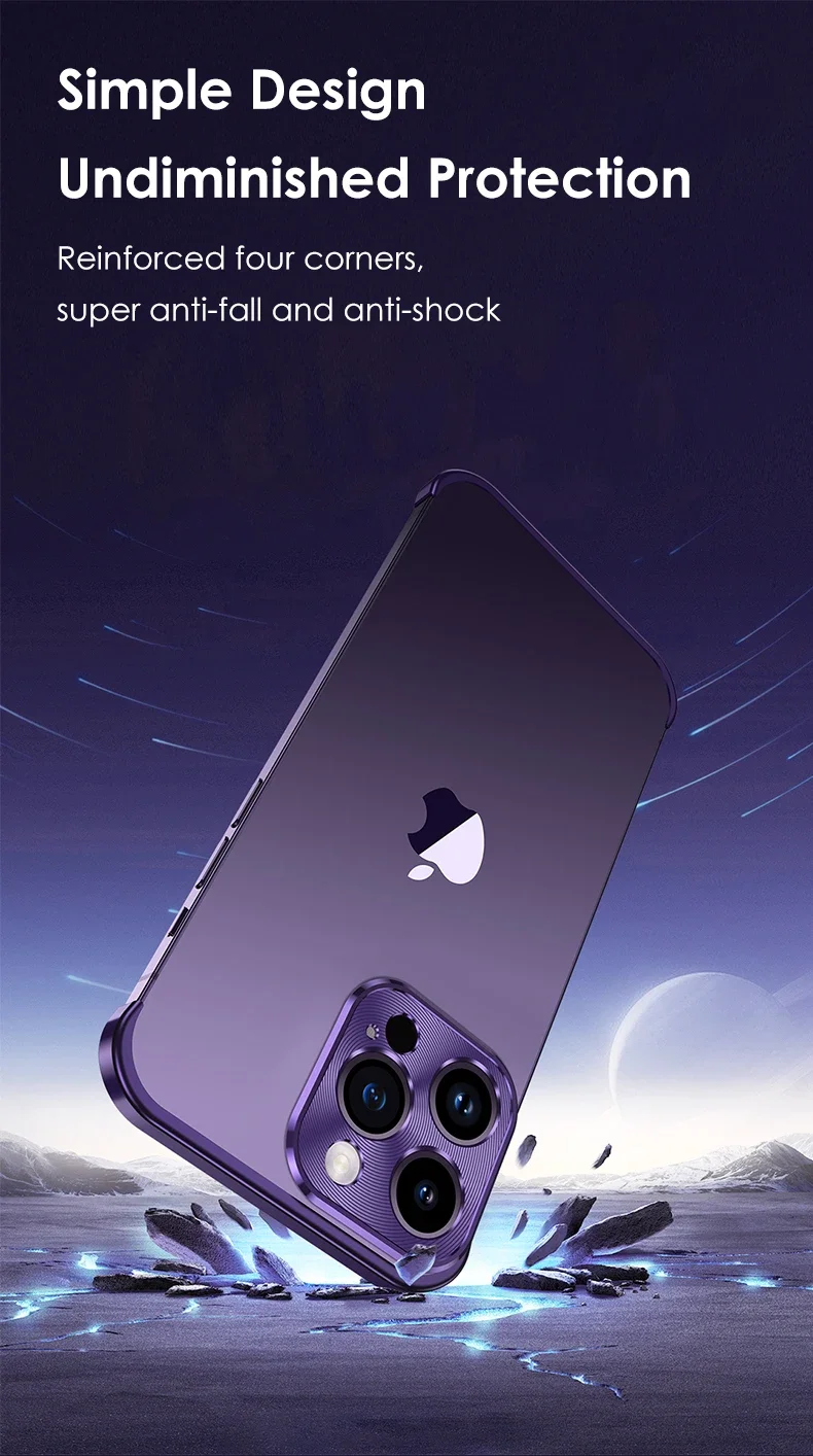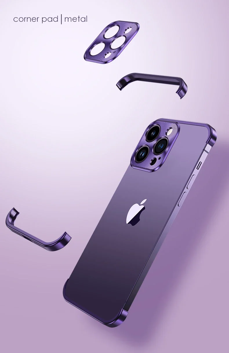 Esquina de Metal 100% parachoques sin marco Real con funda protectora de lente de cristal para IPhone 14 Plus 13 12 Pro Max 14Pro 13Pro cubierta de lujo