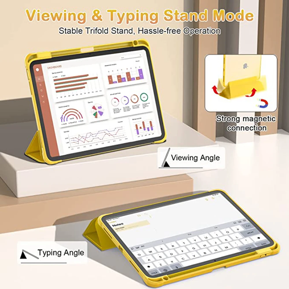 Esta funda tiene un portalápices compatible con ID táctil, protección de cámara, diseño de imanes integrados que admite Activación/suspensión automática, cubierta frontal de tres pliegues que le brinda 2 ángulos de visión diferentes.