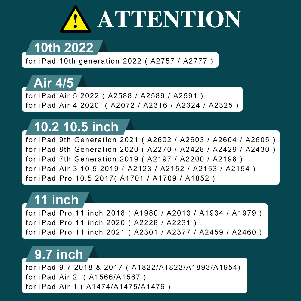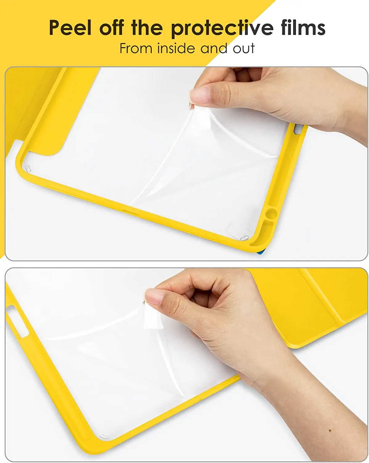 Ofrece la diferencia por un diseño de protección completa, la cubierta frontal de cuero PU y el Marco suave de TPU protegen su iPad de golpes, caídas e impactos. La parte posterior del PC transparente proporciona un fuerte soporte y el lugar para el bricolaje.