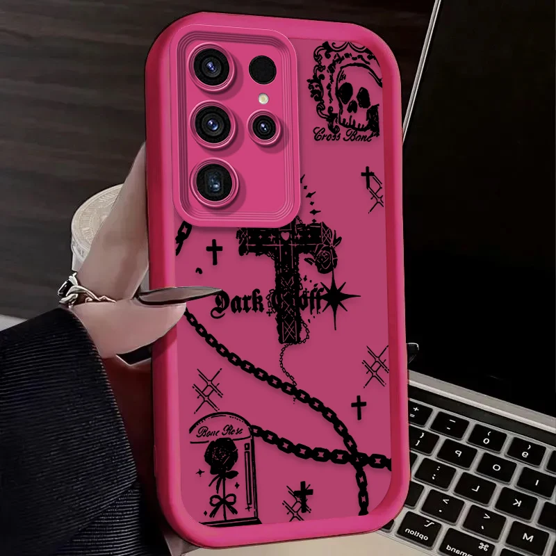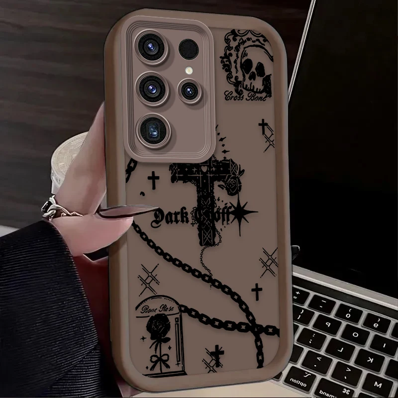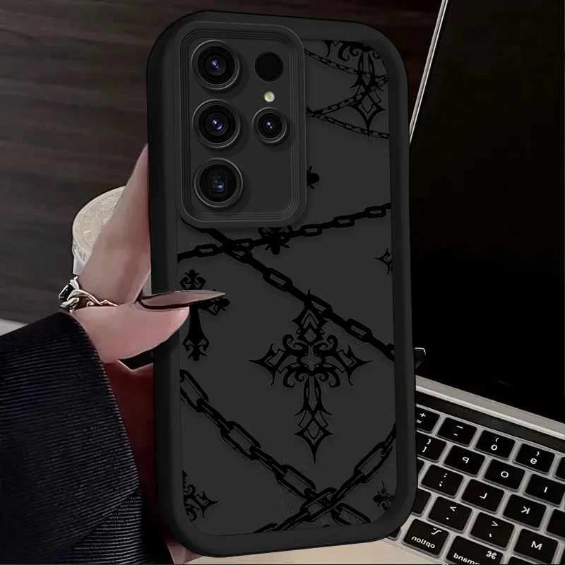 Funda con patrón de cadena cruzada oscura para Samsung Galaxy S24 S23 S25 Ultra S22 S21 Plus FE A56 A36 A26 A16 A06 A15 A25 A35 A55 5G