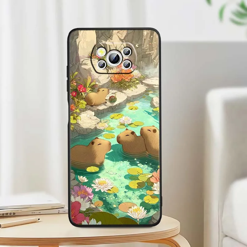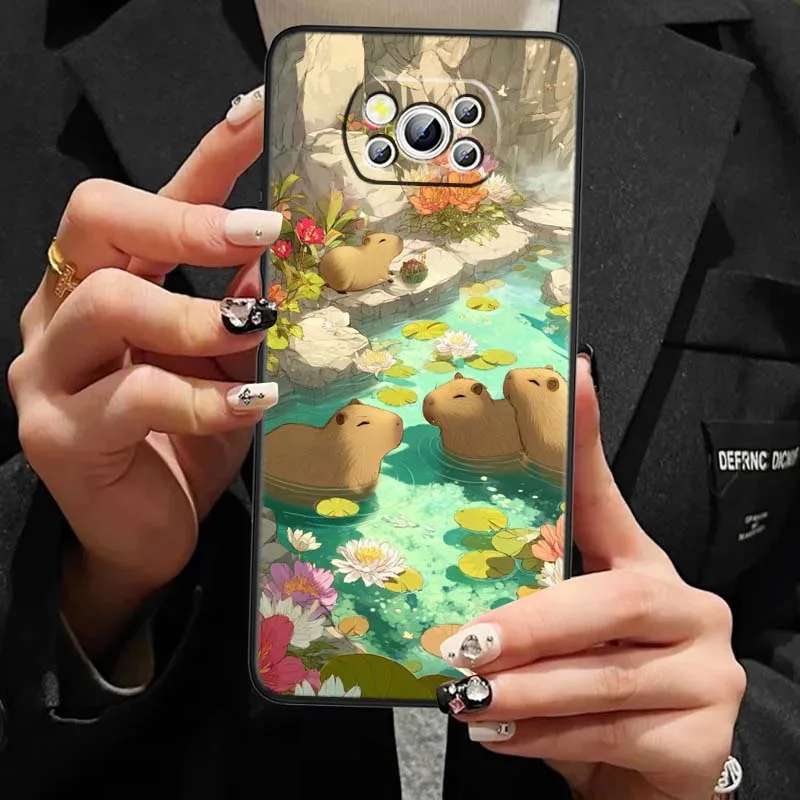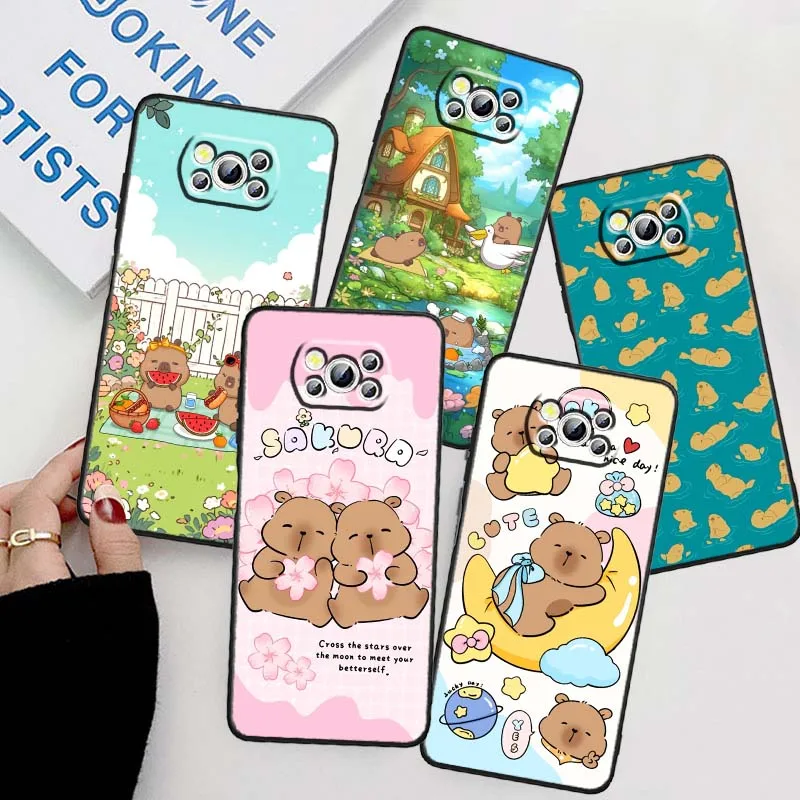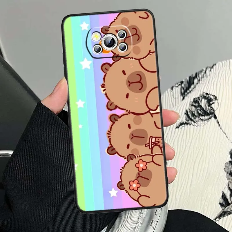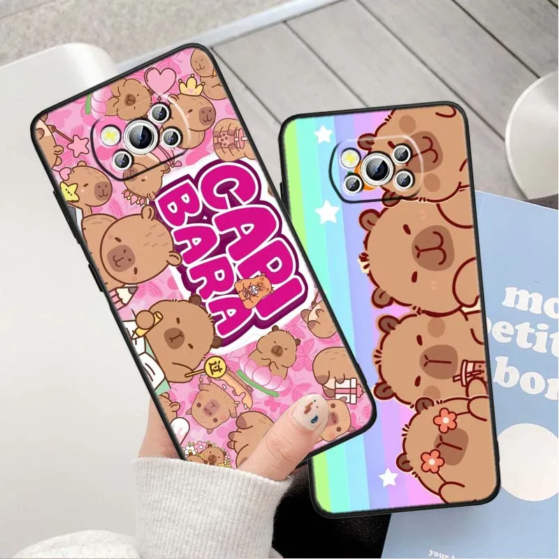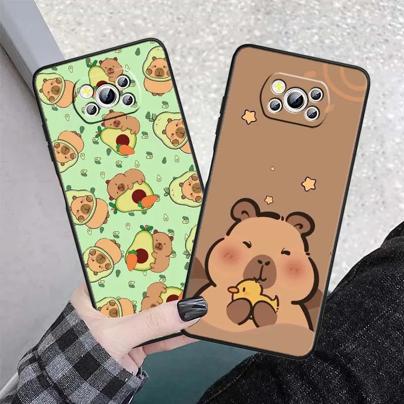 Comprar Funda con patrón de dibujos animados de capibara para Xiaomi Poco C65 C55 C51 C50 C40 F6 F5 F4 M6 M5 M4 X6 X5 5G, funda negra para teléfono