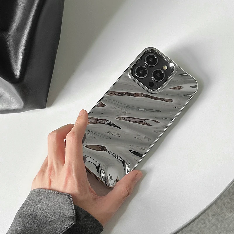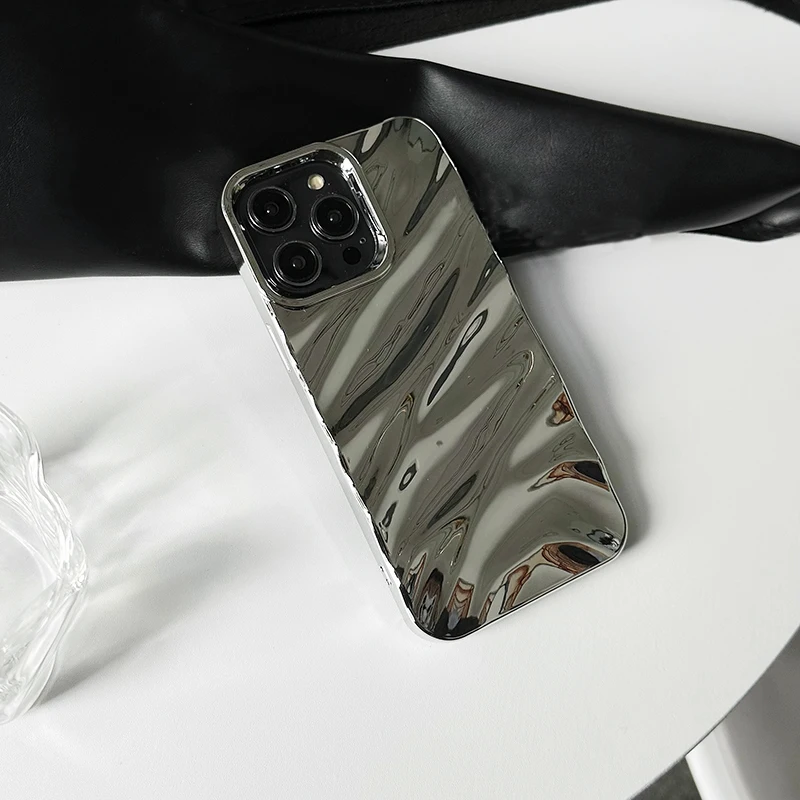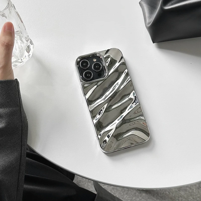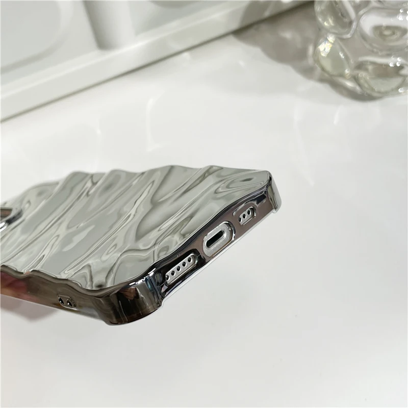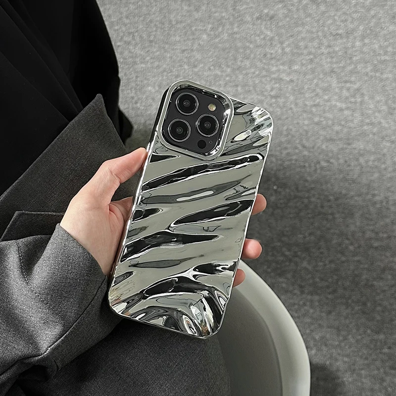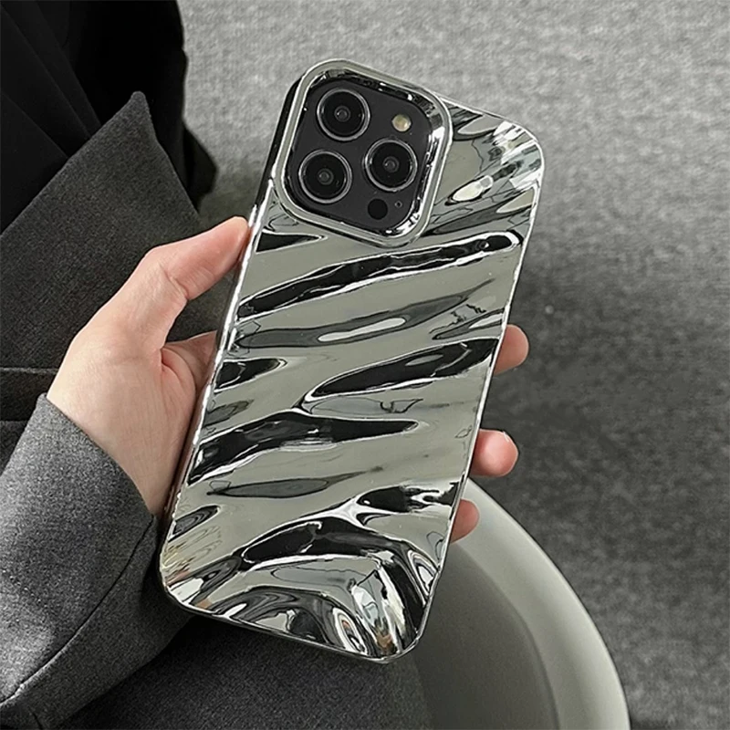Comprar Funda con patrón de pliegue de seda plateada chapada de lujo para iPhone 13, 11, 12, 14, 15 16 Pro Max, funda de teléfono suave a prueba de golpes