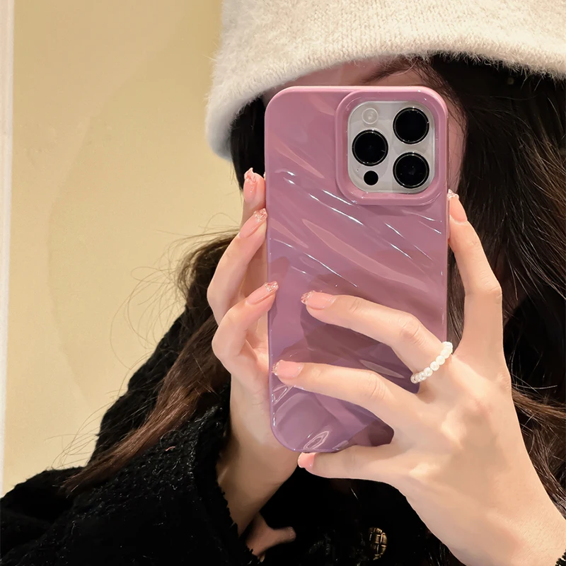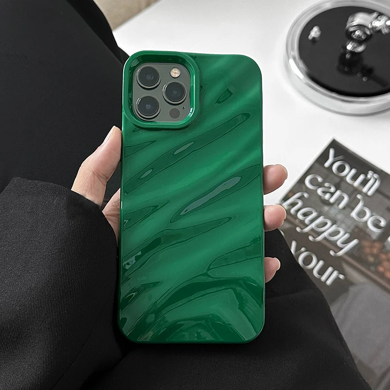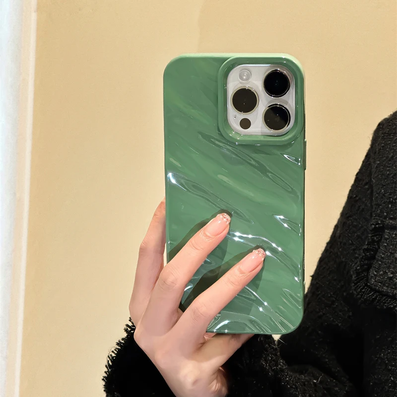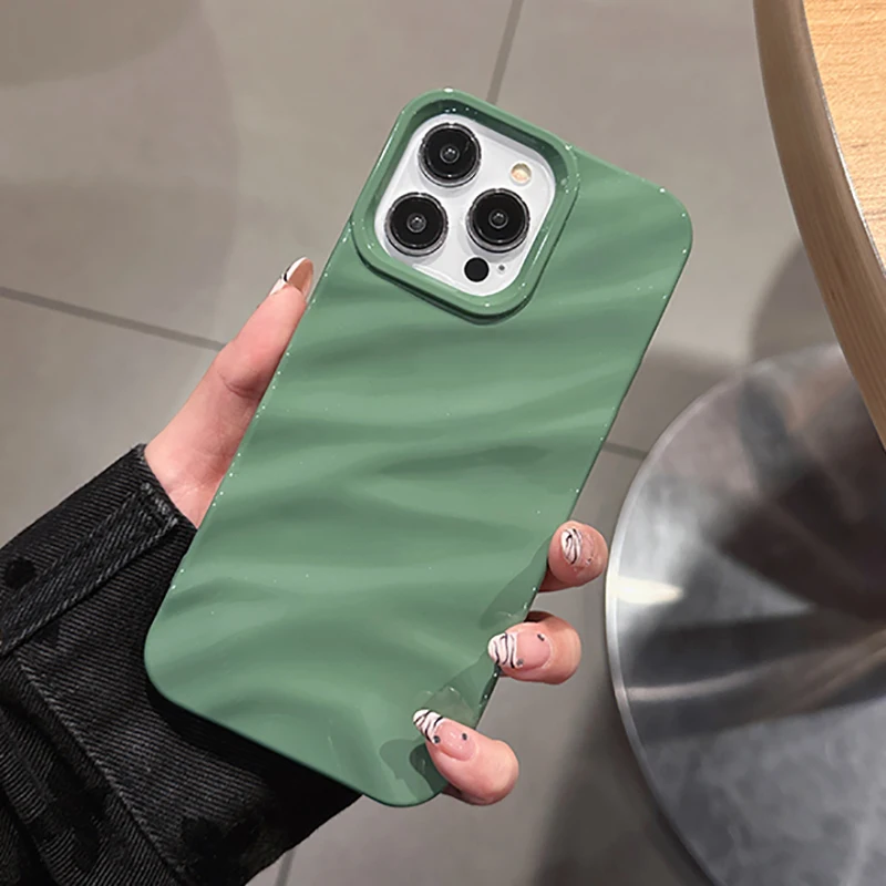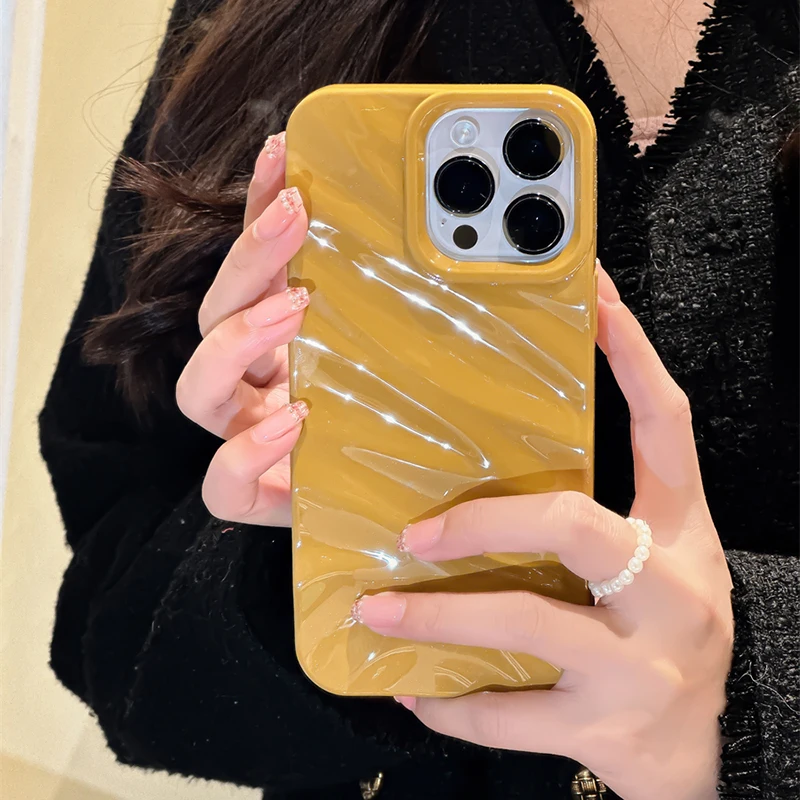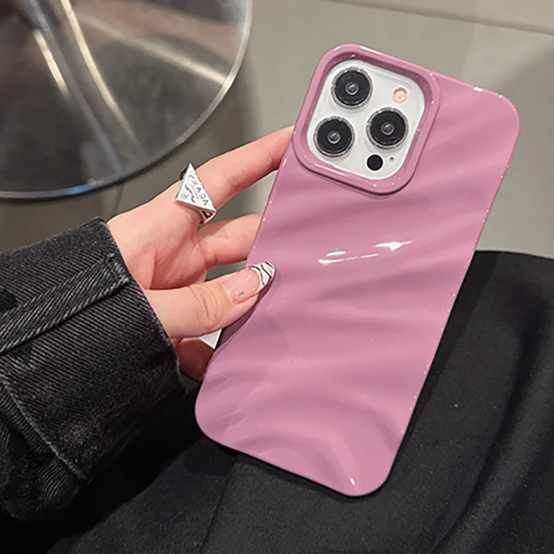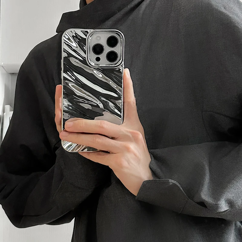Comprar Funda con patrón de pliegue de seda plateada chapada de lujo para iPhone 13, 11, 12, 14, 15 16 Pro Max, funda de teléfono suave a prueba de golpes