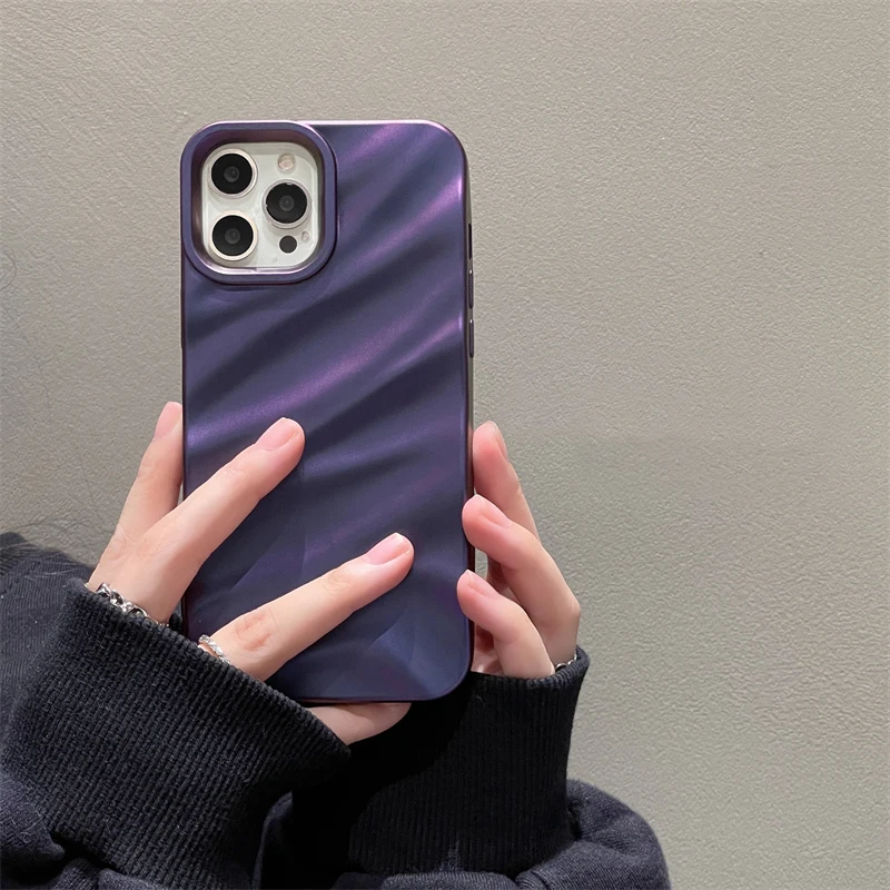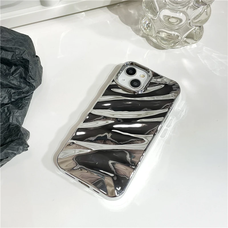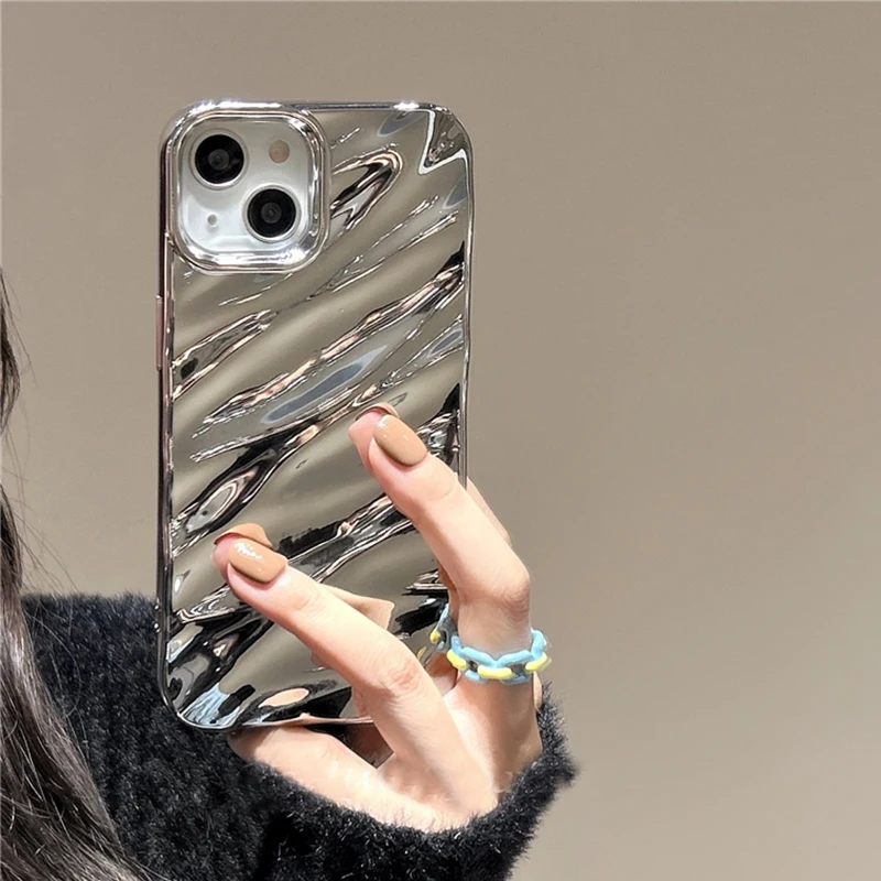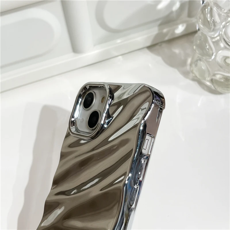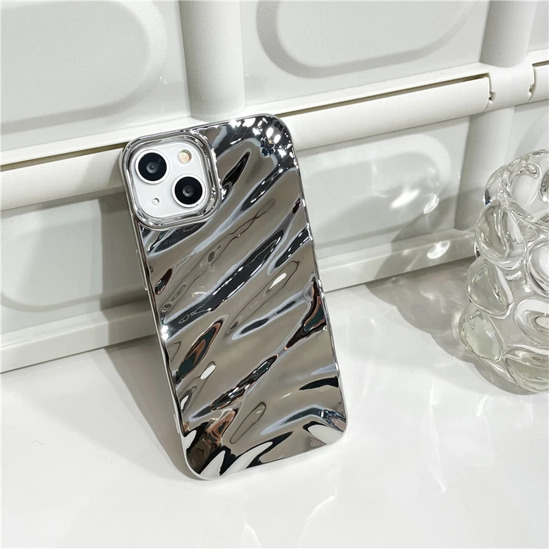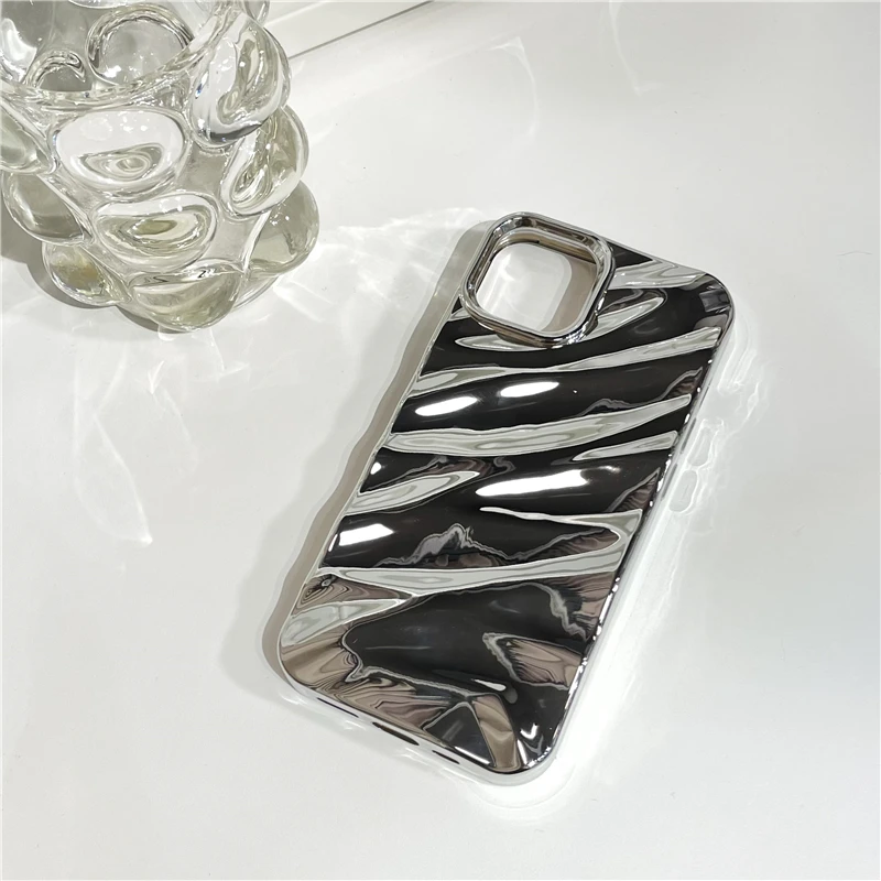 Luxury Plating Silver Silk Fold Pattern Case For iPhone 13 11 12 14 Pro Max 14 Plus Shockproof Soft Phone Cover Bumper