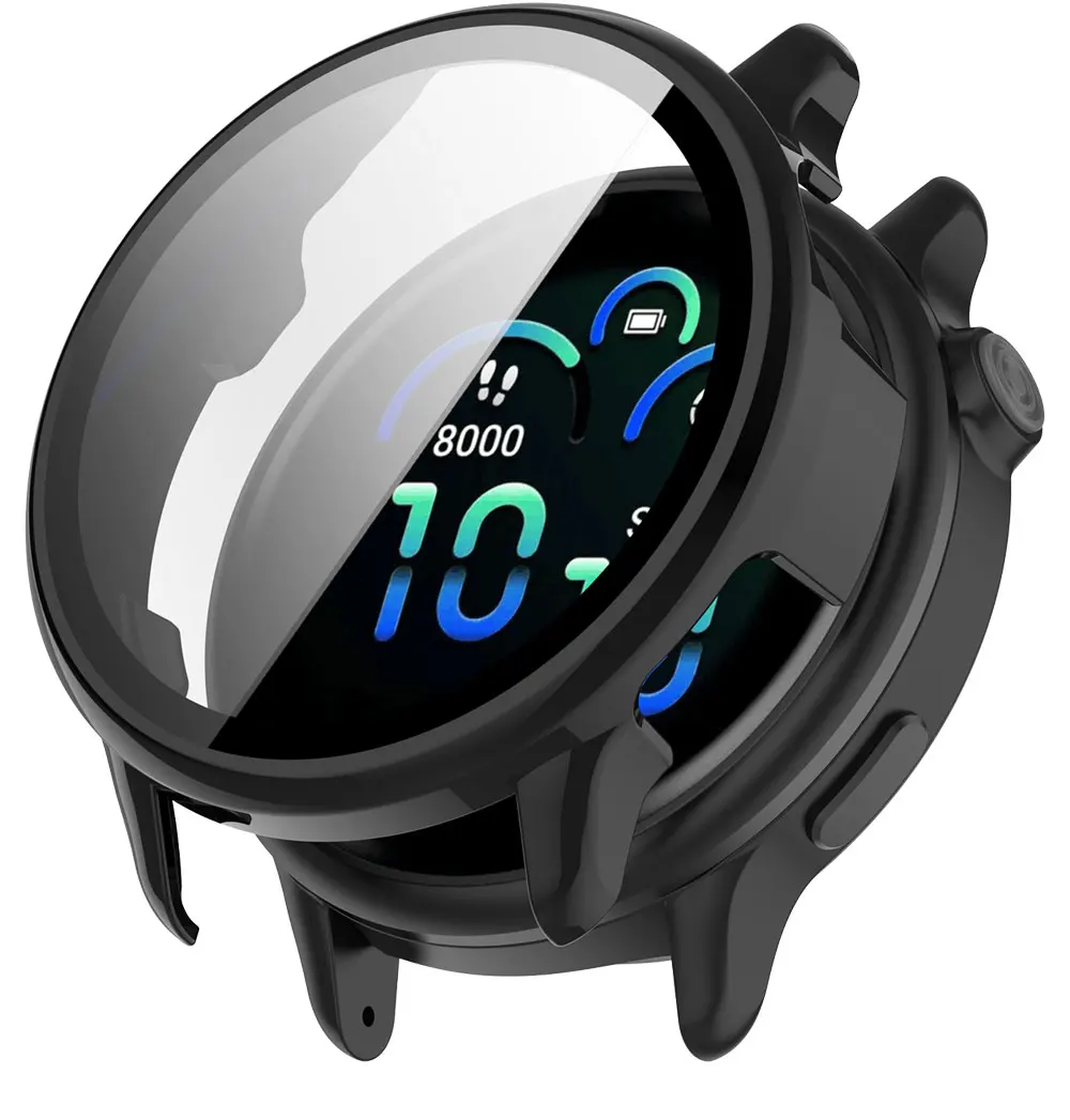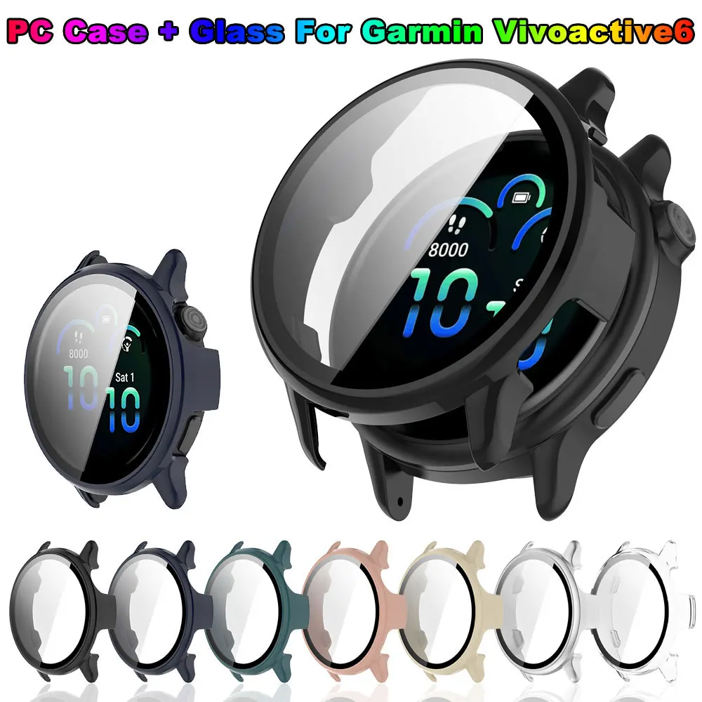 Funda de PC + funda de vidrio templado para Garmin Vivoactive 6, película protectora de pantalla antiarañazos y cubierta protectora de parachoques, accesorios