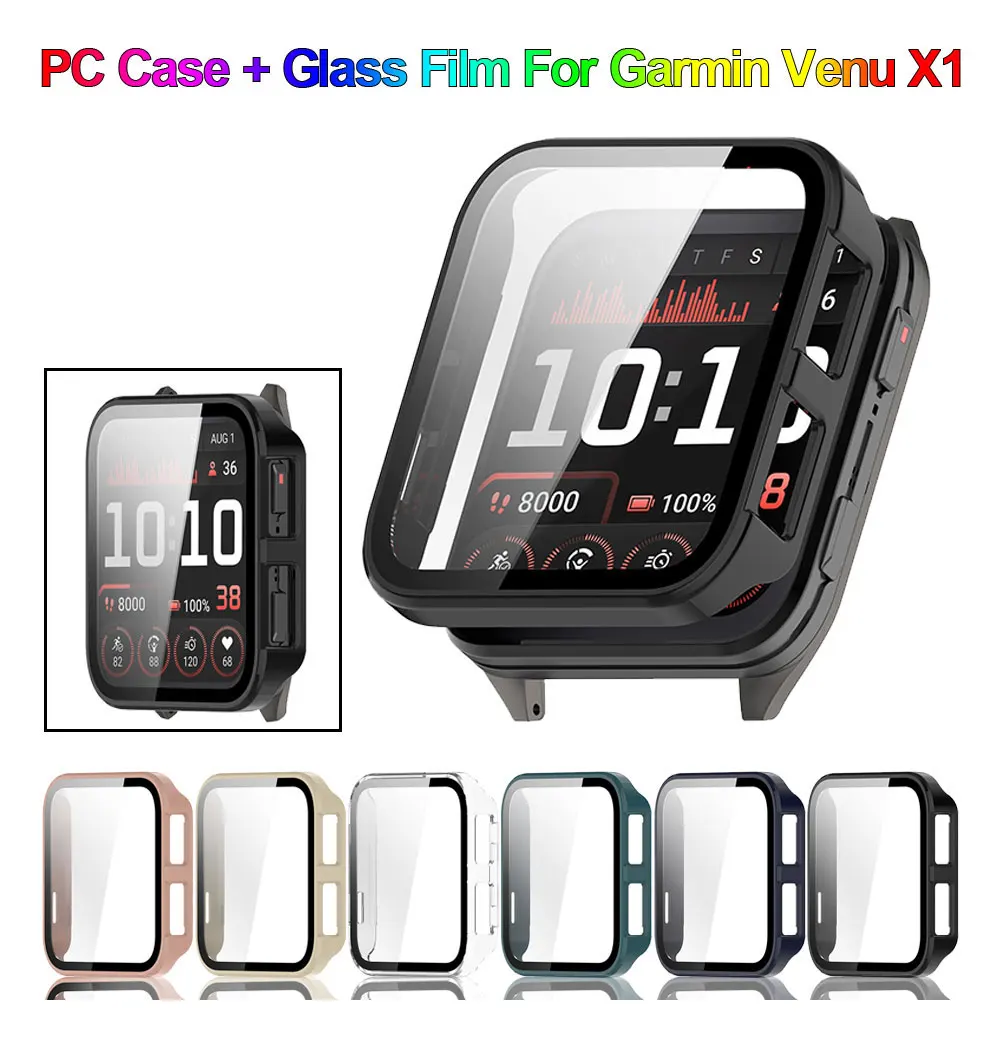 Funda de PC Premium + vidrio templado para Garmin Venu X1, película protectora de pantalla antiarañazos y cubierta protectora de parachoques, accesorios