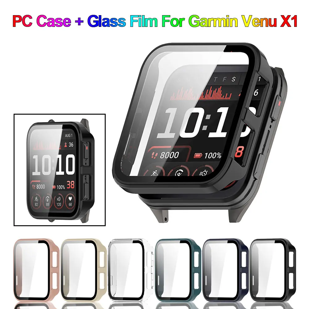 Funda de PC Premium + vidrio templado para Garmin Venu X1, película protectora de pantalla antiarañazos y cubierta protectora de parachoques, accesorios