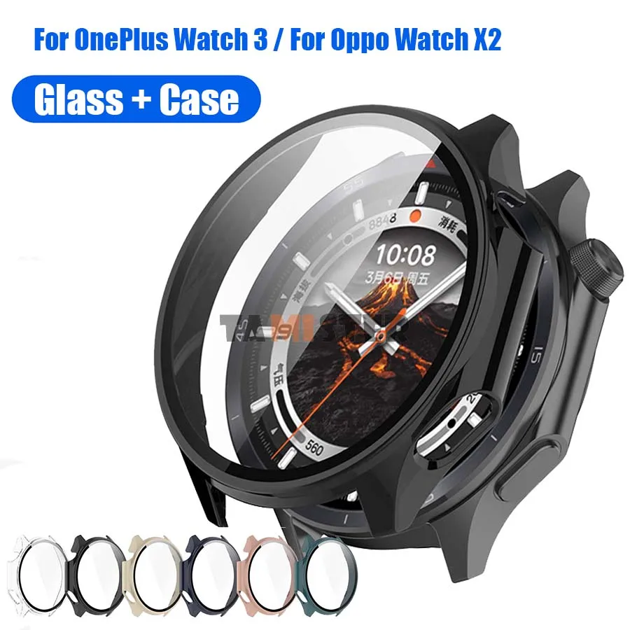 Funda de PC + vidrio templado para Oneplus Watch 3 2, Protector de reloj inteligente, cubierta protectora de parachoques integral para Oppo Watch X2, accesorios