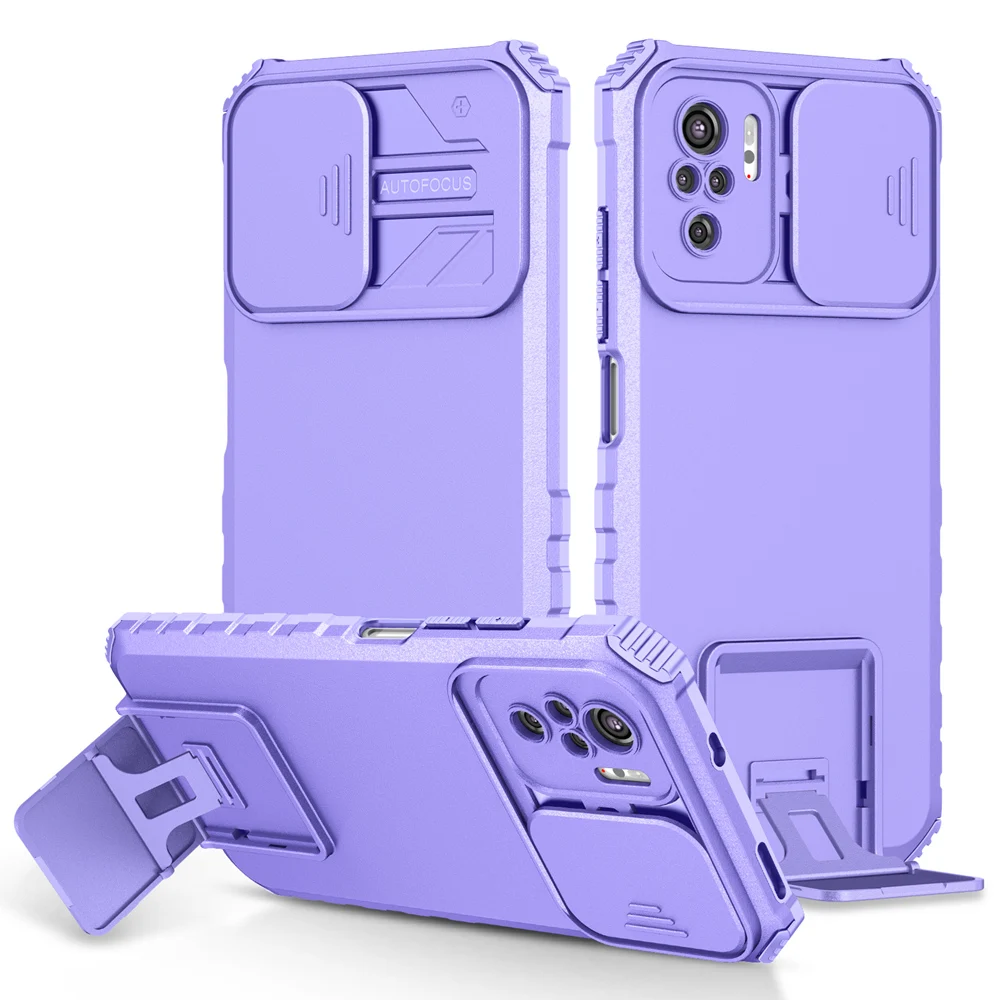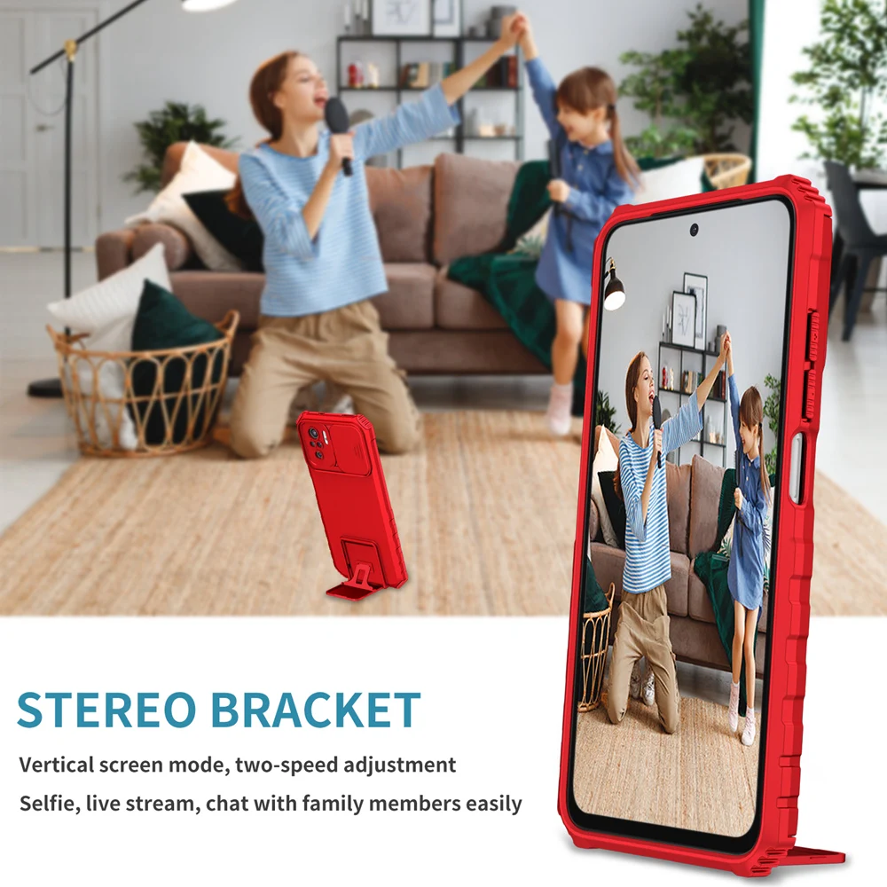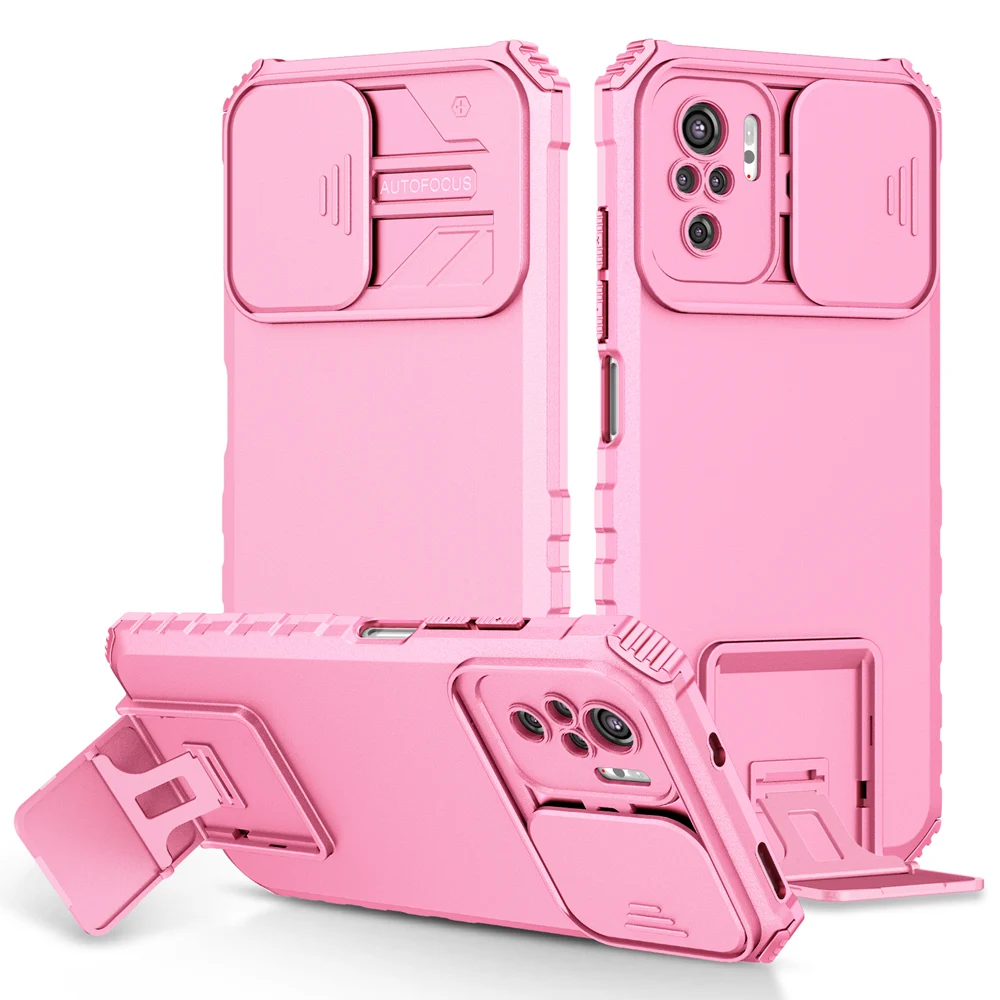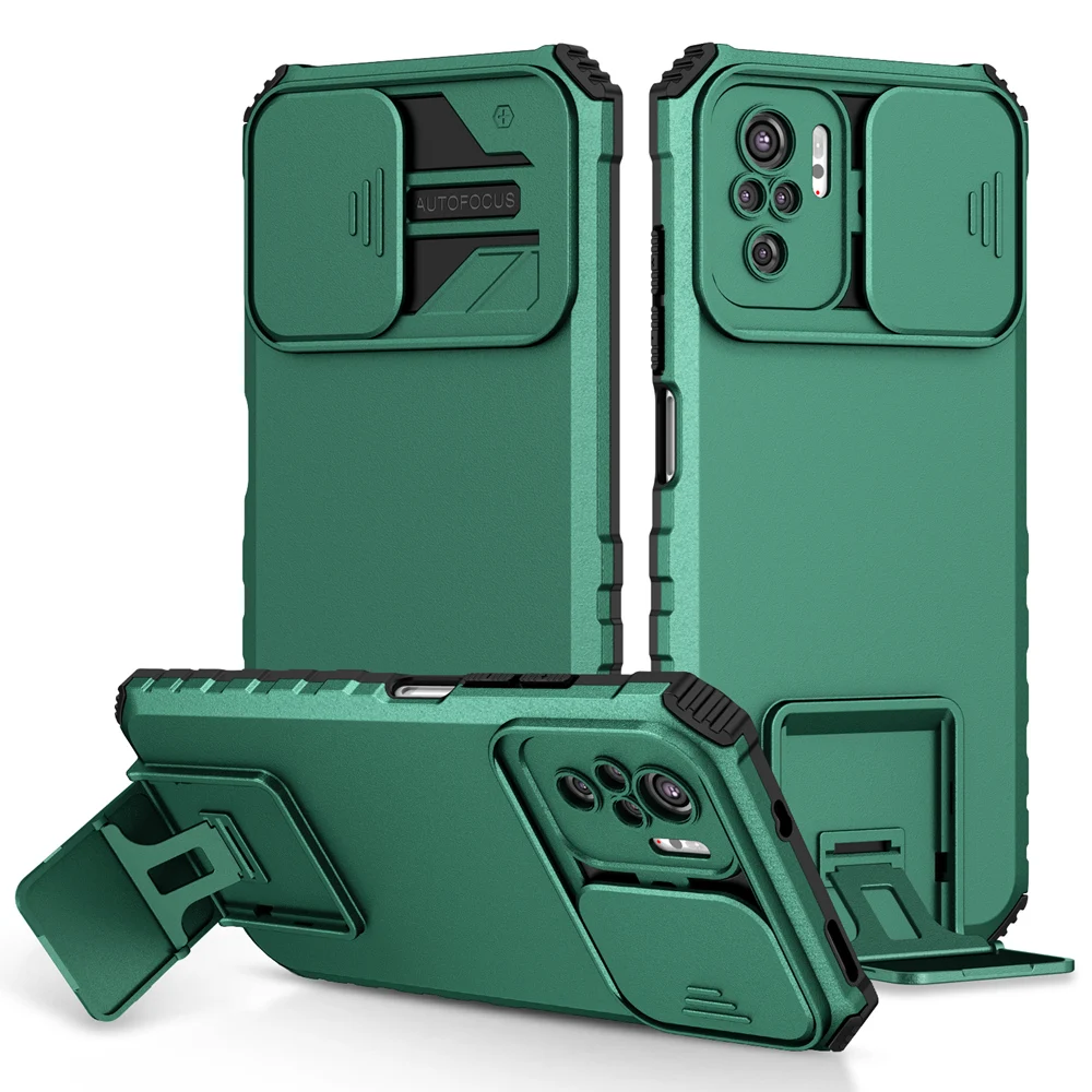 Comprar Funda Peatkop a prueba de golpes para Xiaomi POCO M5S, protección de cámara Push Pull, funda trasera de teléfono con soporte en vivo para Redmi Note 10S 10 Pro 4G