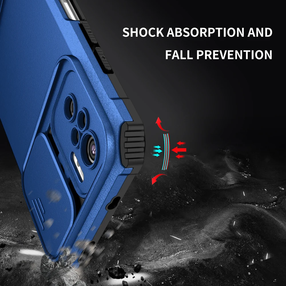 Pemuyak Funda a prueba de golpes para Xiaomi POCO M5S Push Pull Protección de cámara Soporte en vivo Funda trasera de teléfono para Redmi Note 10S 10 Pro 4G
