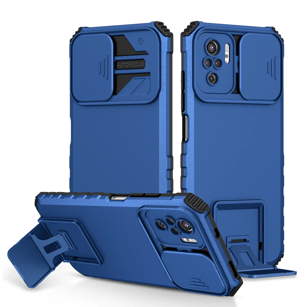 Comprar Funda Peatkop a prueba de golpes para Xiaomi POCO M5S, protección de cámara Push Pull, funda trasera de teléfono con soporte en vivo para Redmi Note 10S 10 Pro 4G