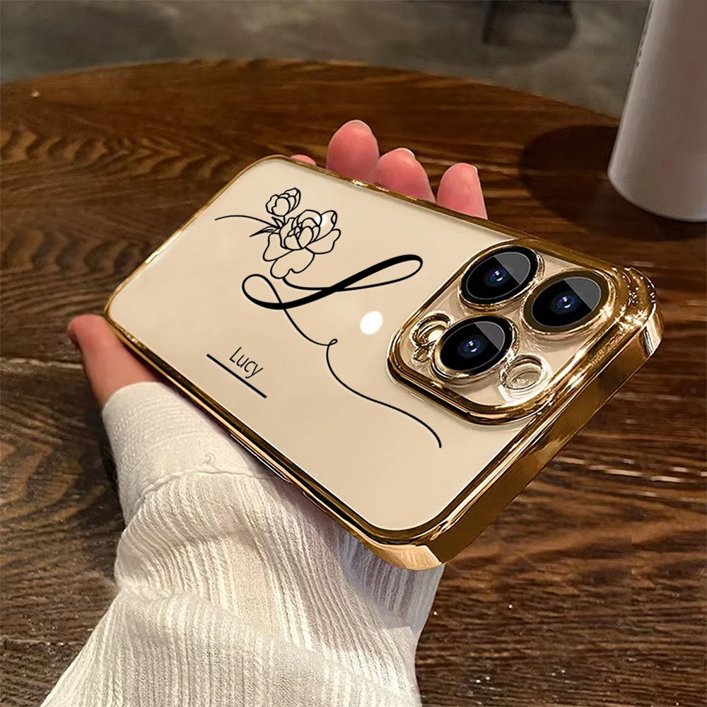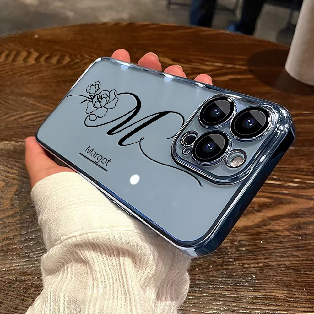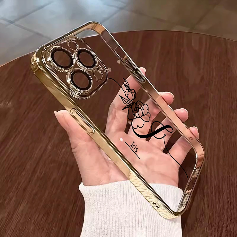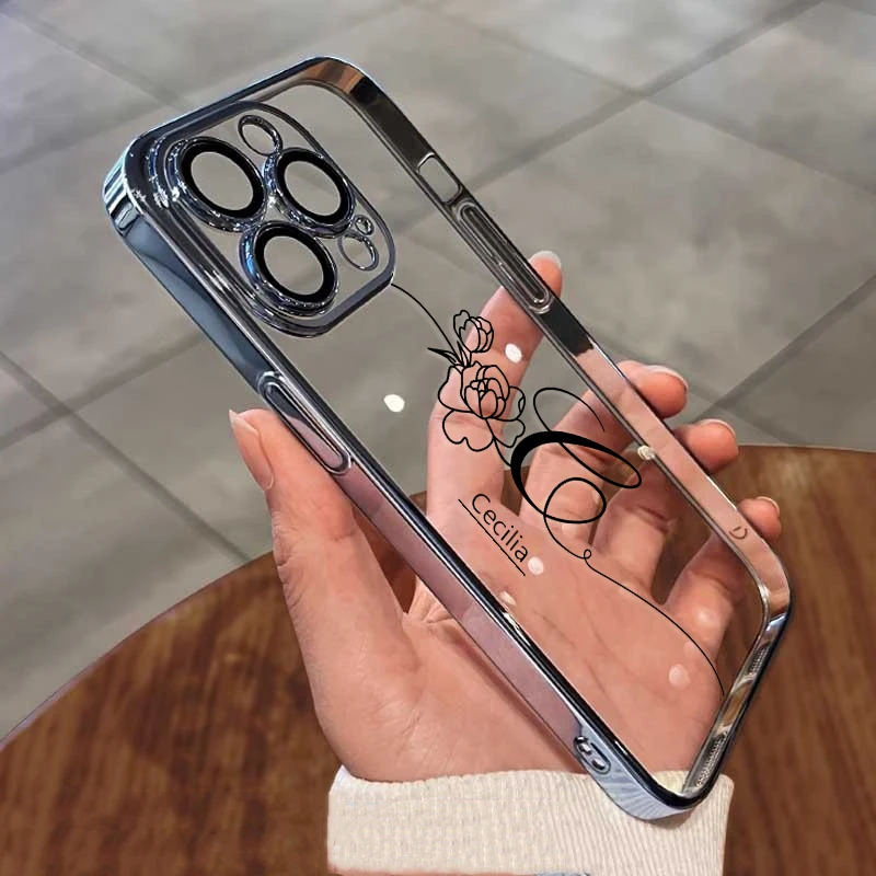 Funda para teléfono con nombre personalizado y personalizable para bricolaje diseñada para modelos de iPhone 16 15 14 13 12 11 Pro Max Plus con lujosos colores caramelo Revestimiento transparente Silicona suave adornada con diseños florales con protector de lente