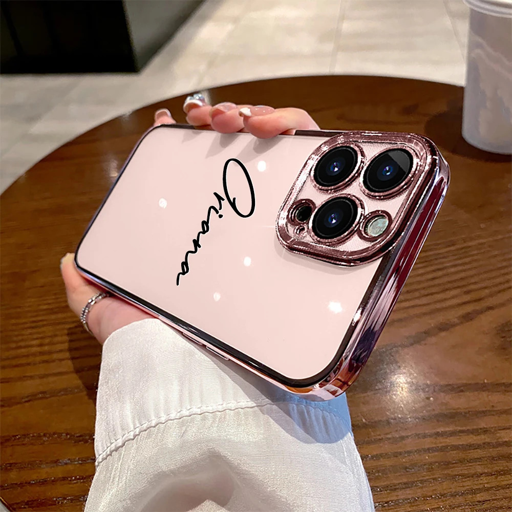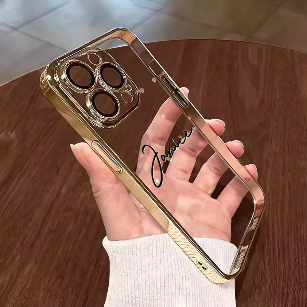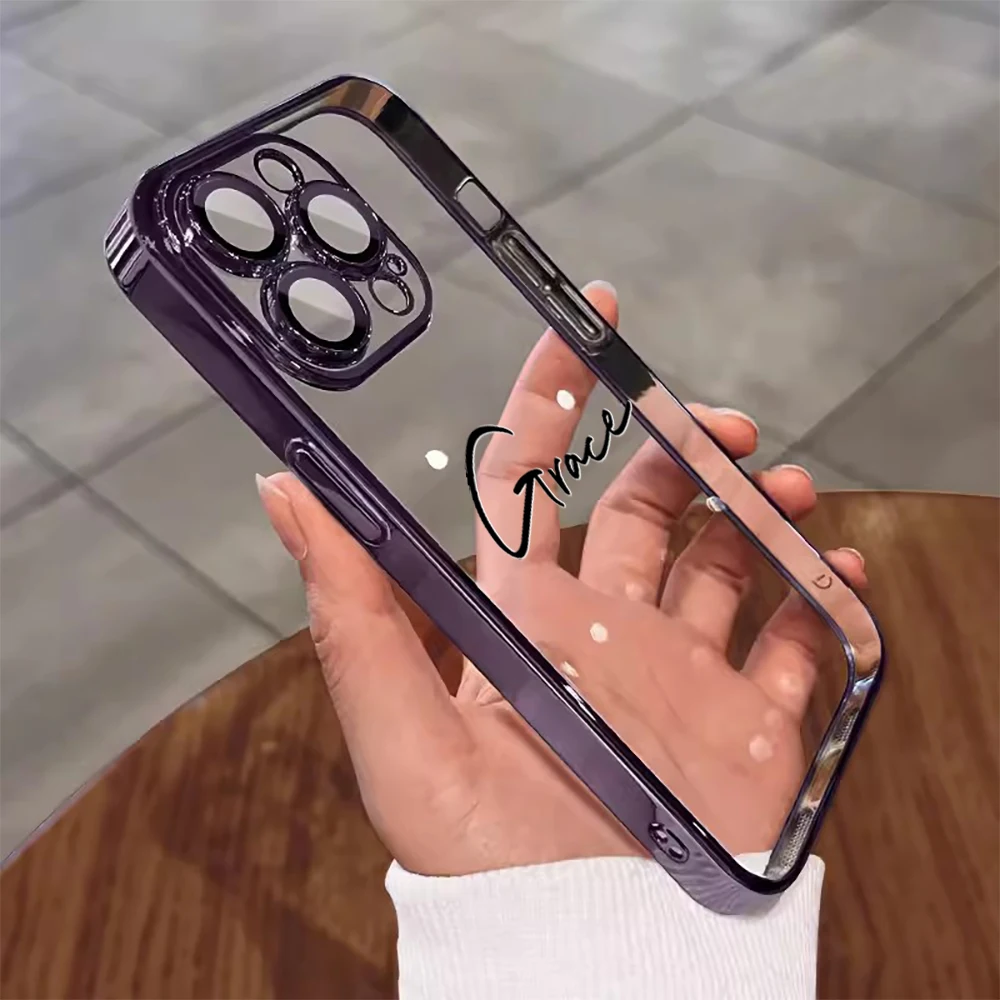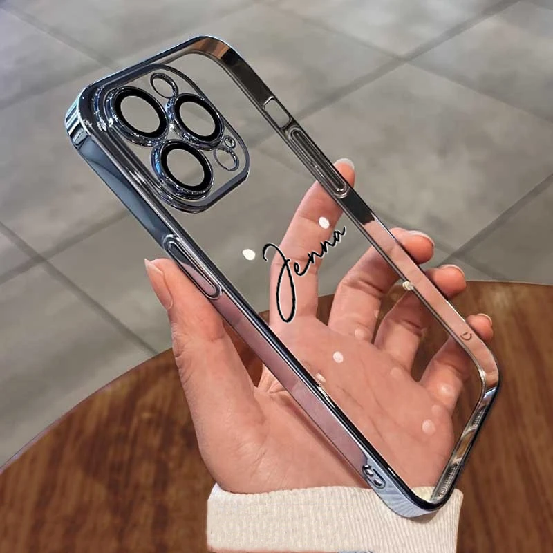 Comprar Funda personalizada con nombre personalizable para iPhone 16, 15, 14, 13, 12, 11 Pro Max, revestimiento transparente, TPU suave con cubierta protectora de lente