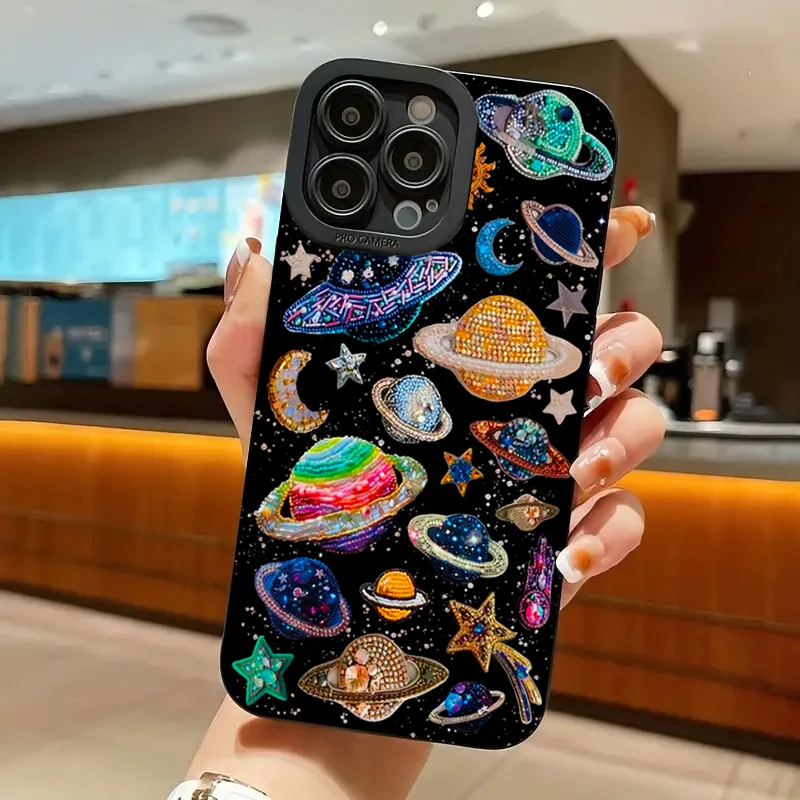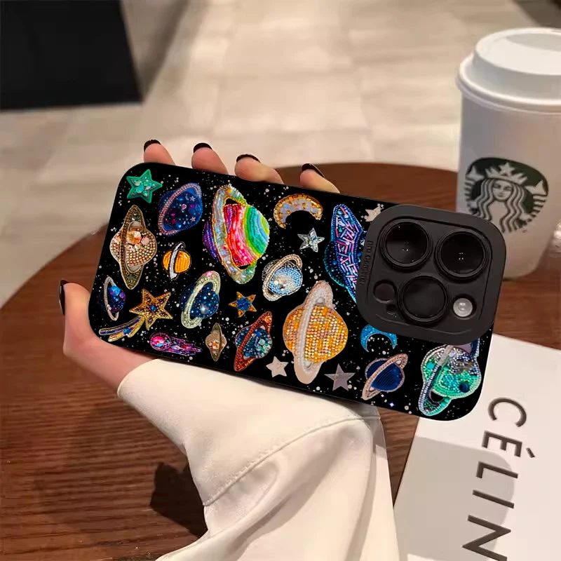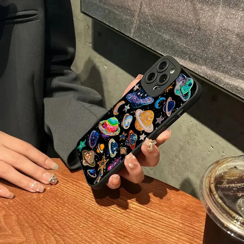 Comprar Funda pintada a mano con planeta trenzado colorido para Samsung Galaxy S24 S23 Ultra S22 Plus S21 FE A15 A35 A55 A34 A54 A33 A53 A52