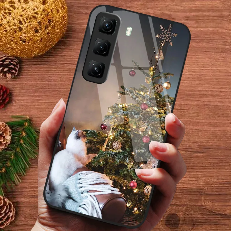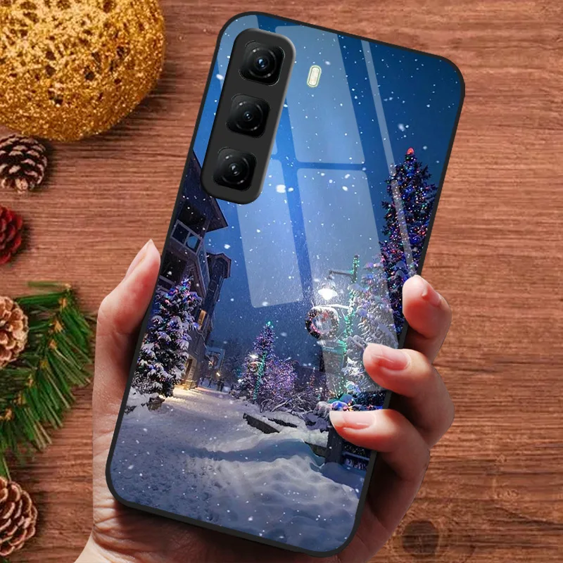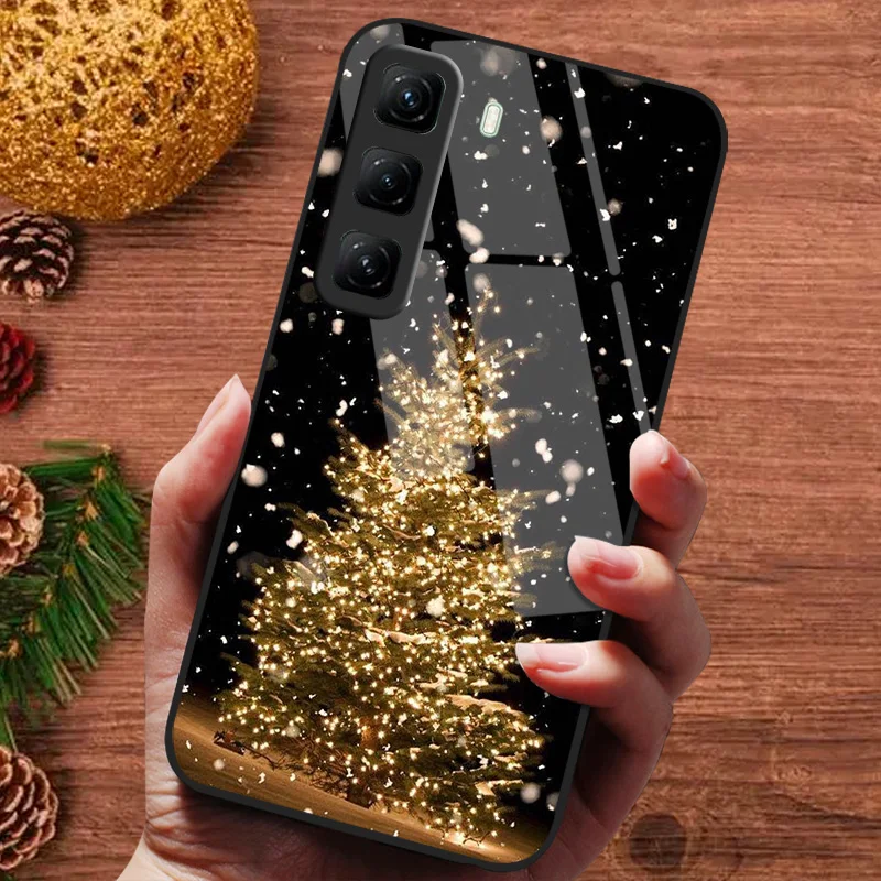 Funda pintada de Navidad para infinix Hot 50 60 4G 5G 50i 60i Hot50 Pro + 50Pro Plus Funda de vidrio templado Fundas para teléfono
