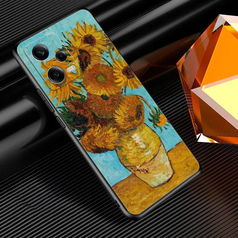 Van Gogh Café Terraza Noche estrellada Girasol Pintura Funda suave para Xiaomi Redmi Note 12 Pro Plus 12S 11 10 Pro 11S 10S 9 8 Pro 9S 7 8T Funda trasera para teléfono