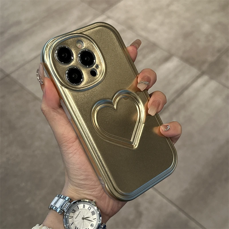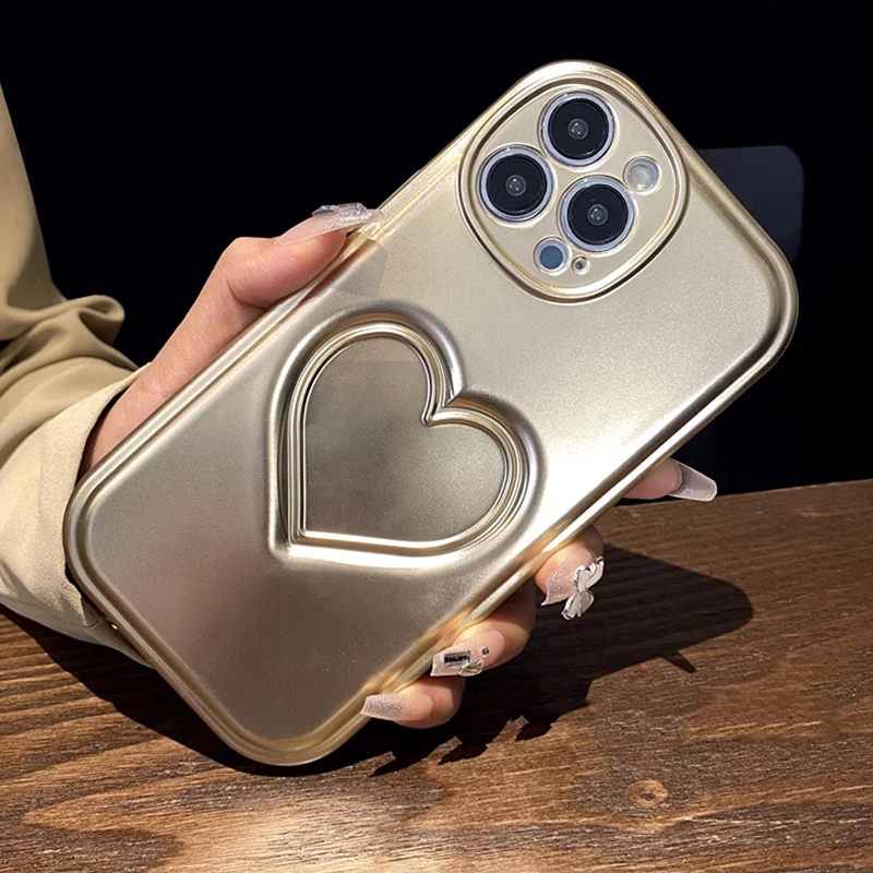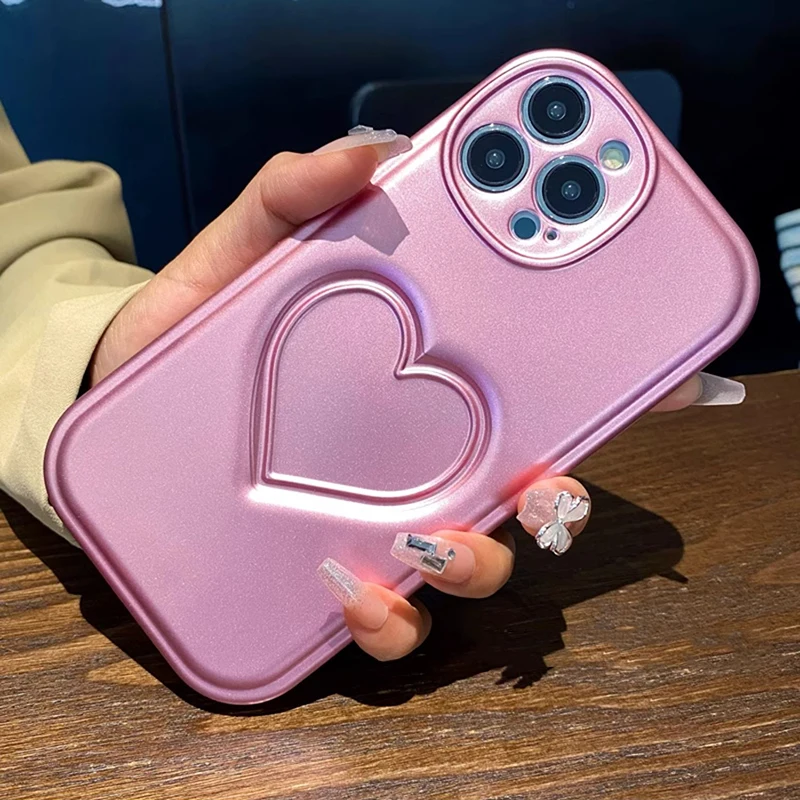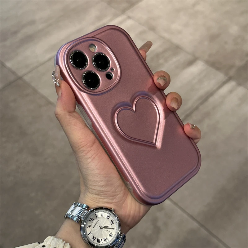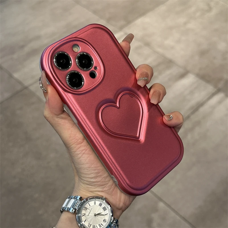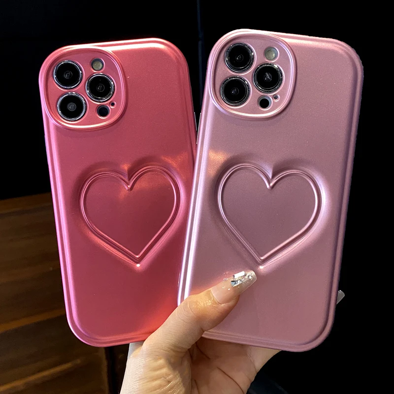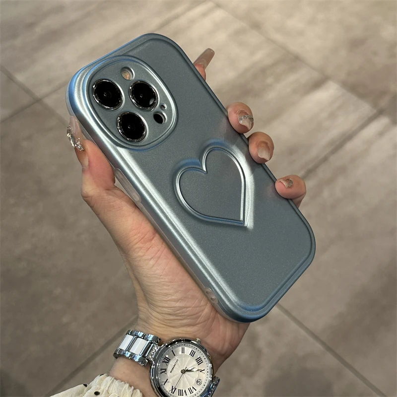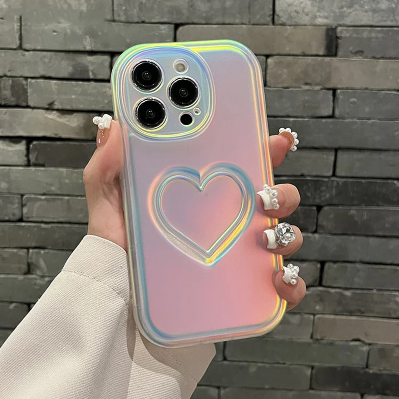 Estética 3D en relieve amor corazón láser brillo chapado plata caso para iPhone 15 Pro Max 14 13 11 12 moda borde redondeado cubierta