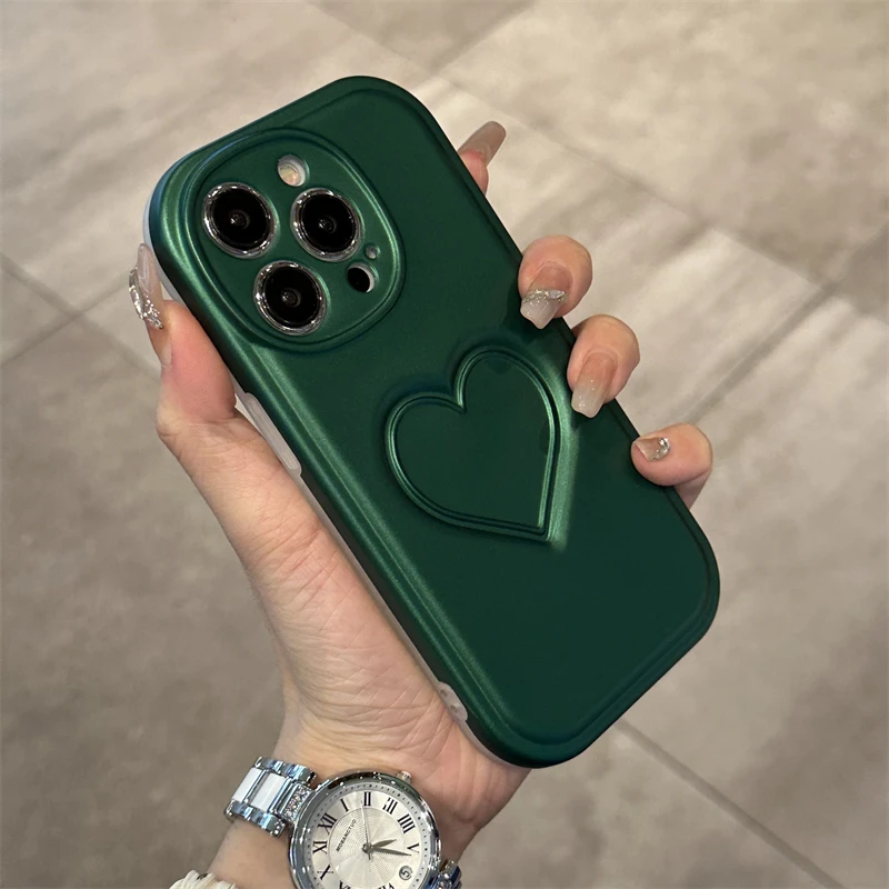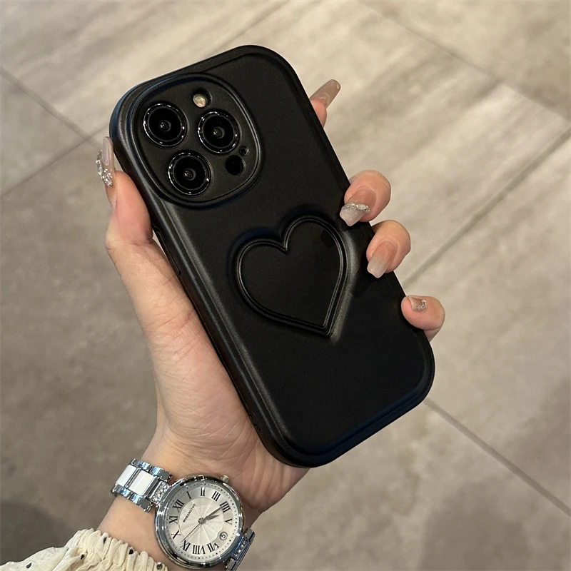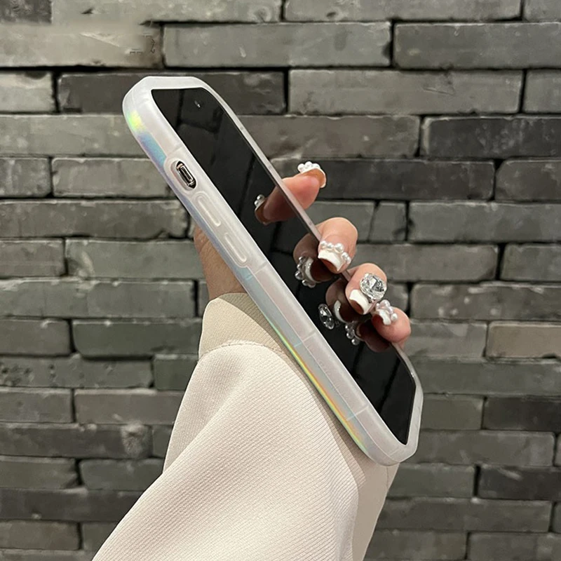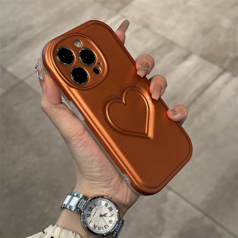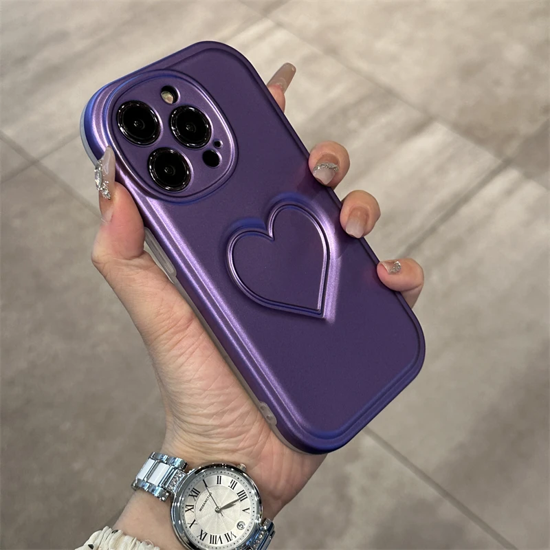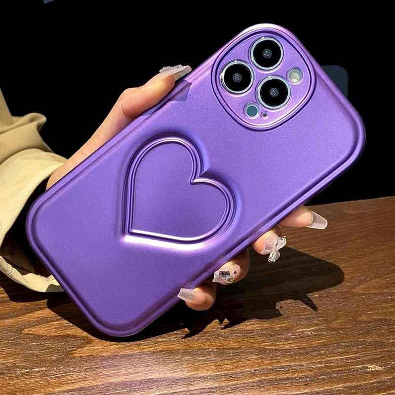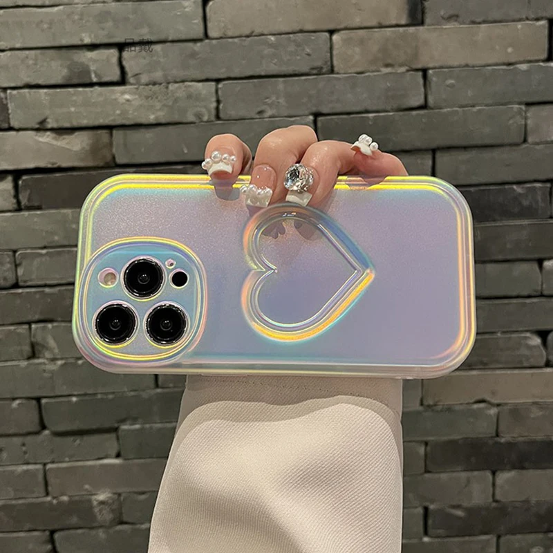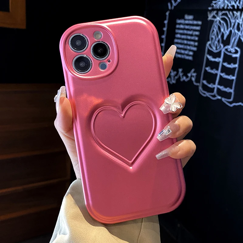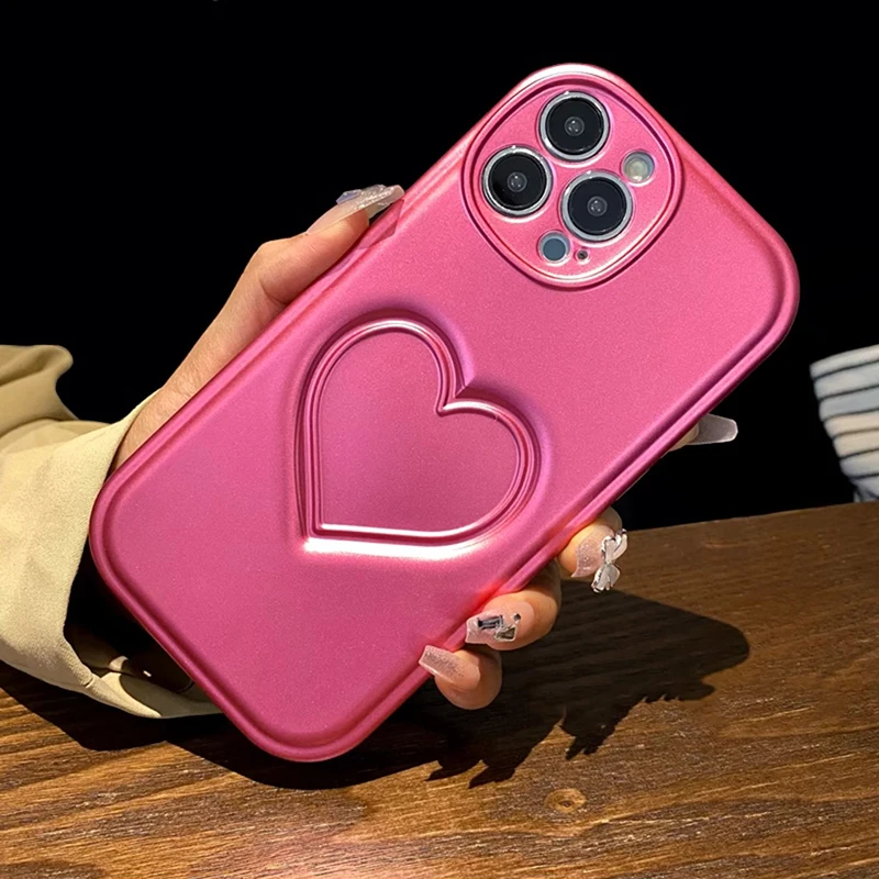 Estética 3D en relieve amor corazón láser brillo chapado plata caso para iPhone 15 Pro Max 14 13 11 12 moda borde redondeado cubierta