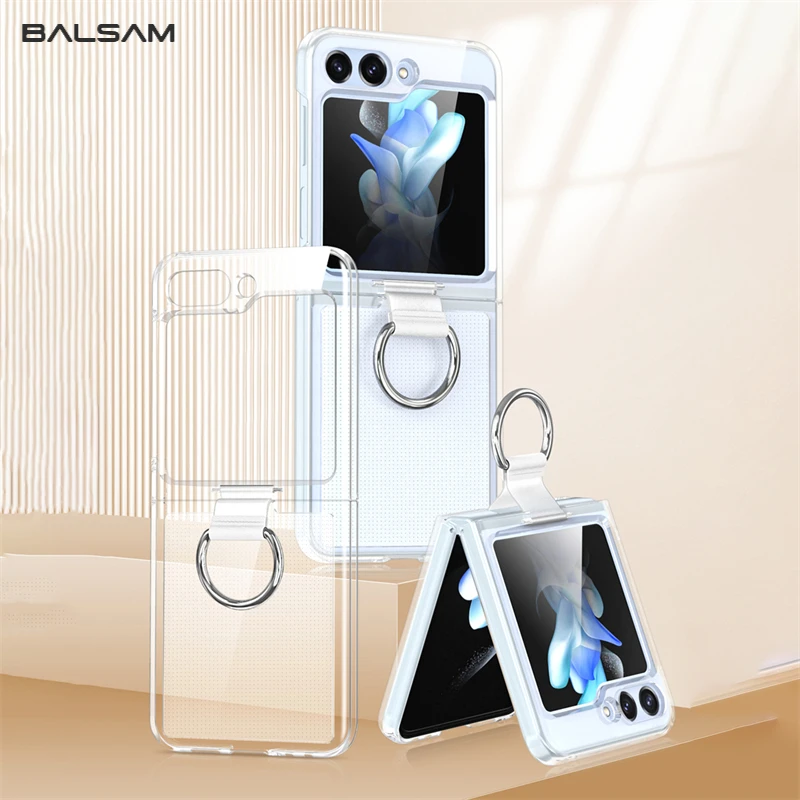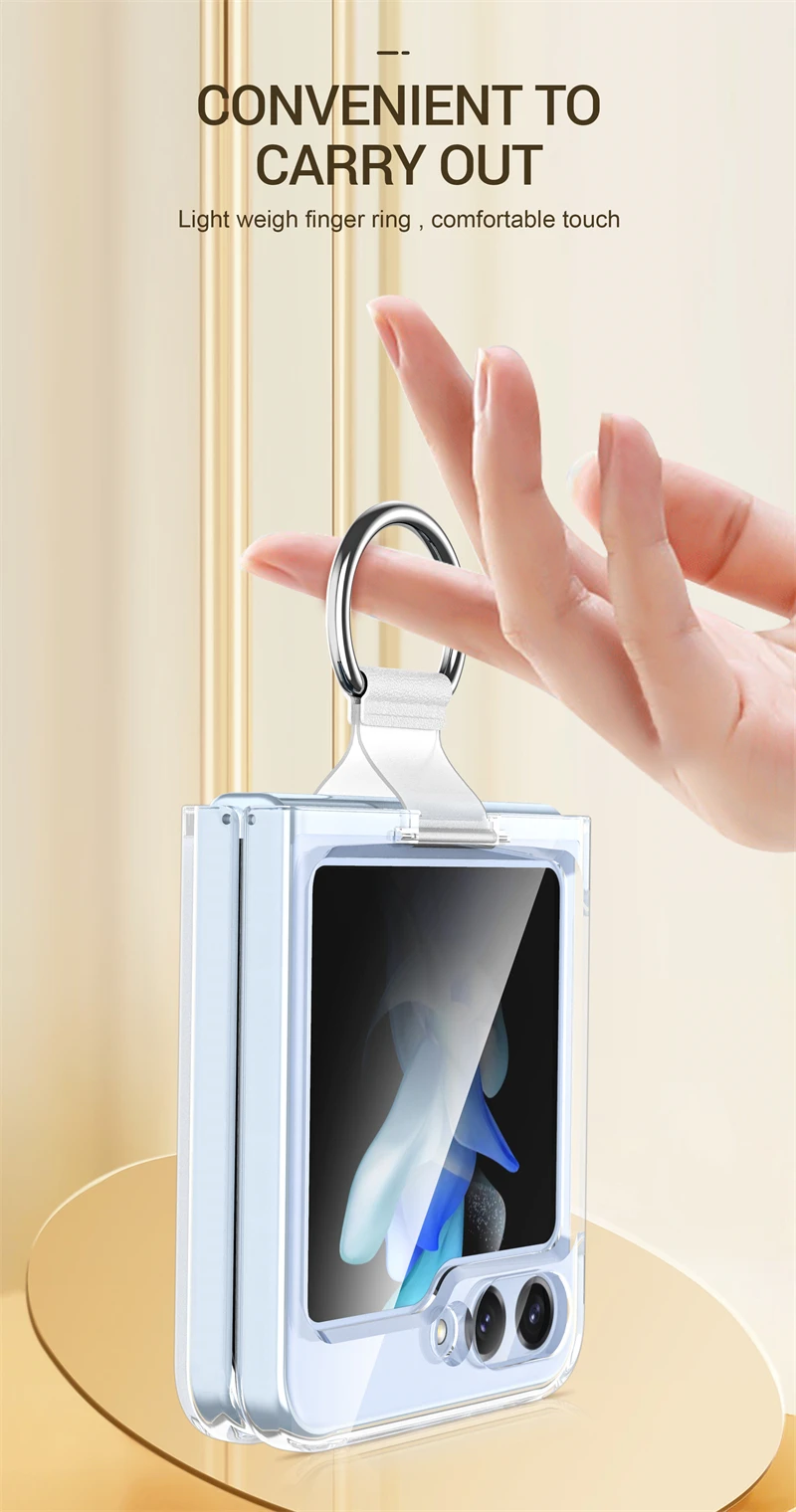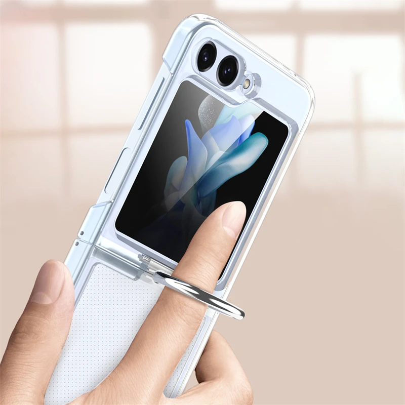 Comprar Funda plegable de Color sólido con hebilla de anillo para el dedo para Samsung Z Flip 6 5 Zflip 5 Z Flip4 Z flip 3 5G cubierta transparente mate a prueba de golpes
