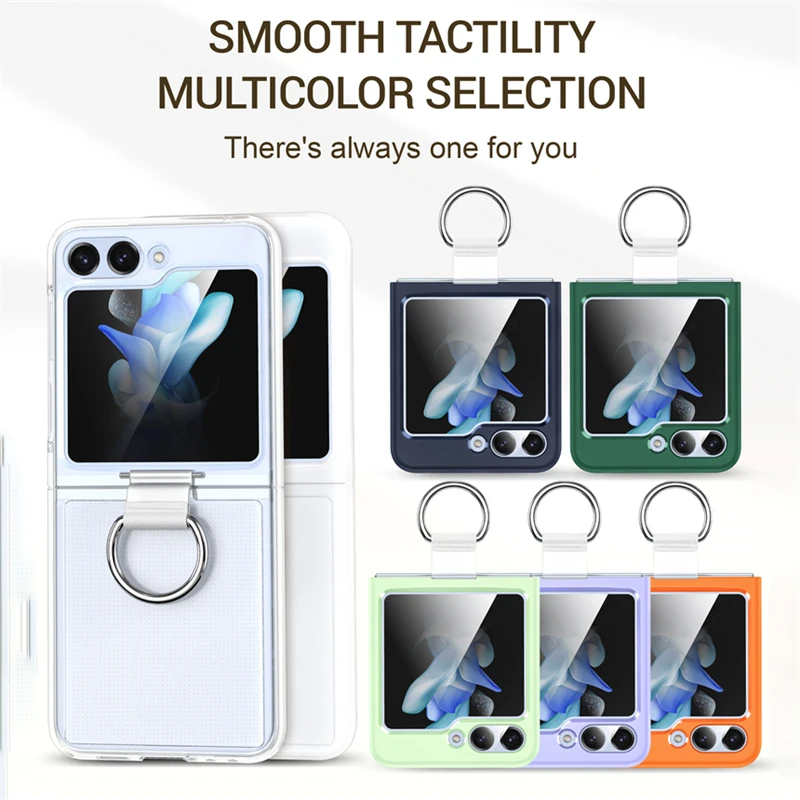 Funda plegable de Color sólido con hebilla de anillo para el dedo para Samsung Z Flip 6 5 Zflip 5 Z Flip4 Z flip 3 5G cubierta transparente mate a prueba de golpes