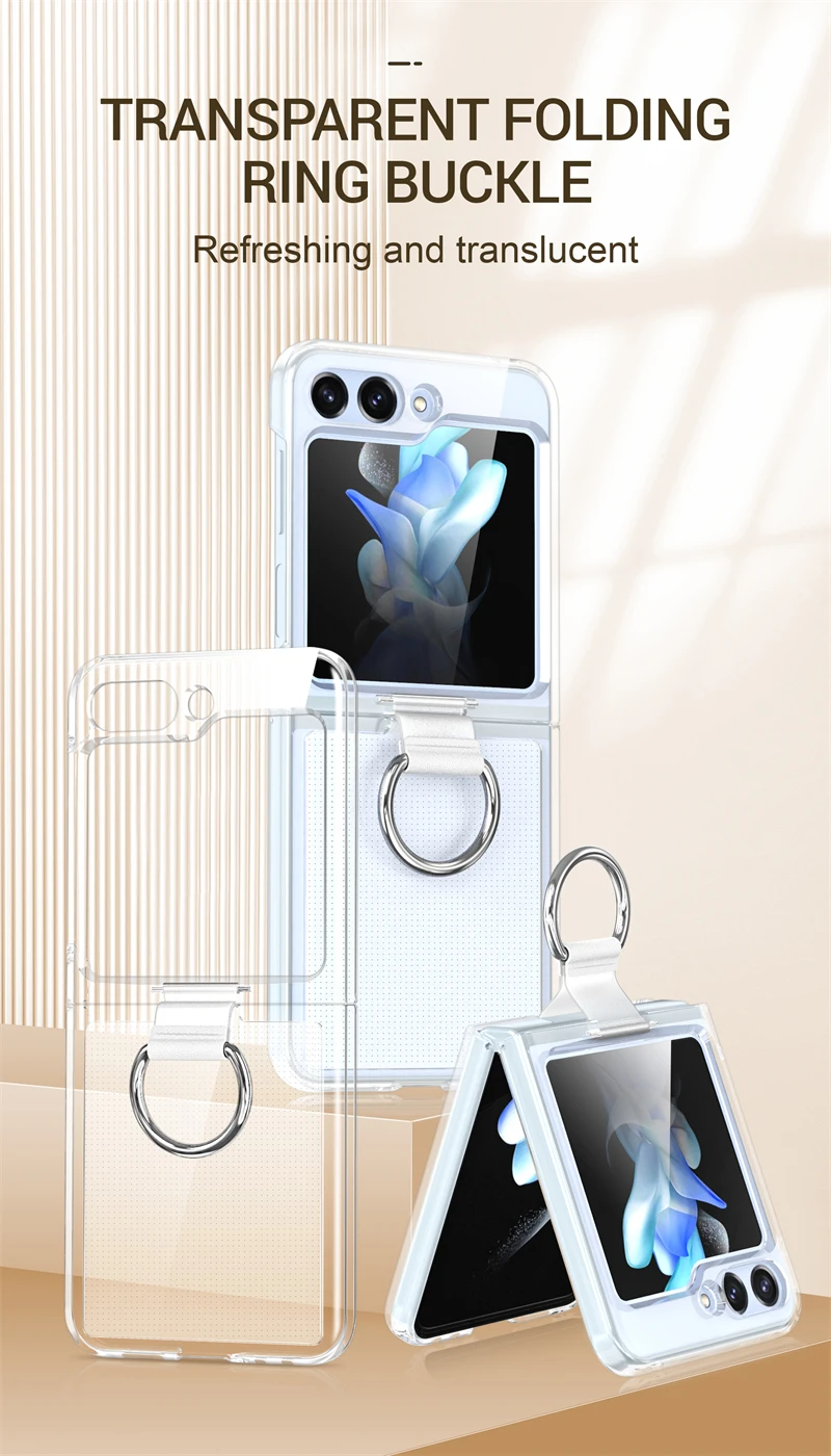 Funda plegable de Color sólido con hebilla de anillo para Samsung Z Flip 6 5 Zflip 5 Z Flip4 Z Flip 3 5G Funda transparente mate a prueba de golpes