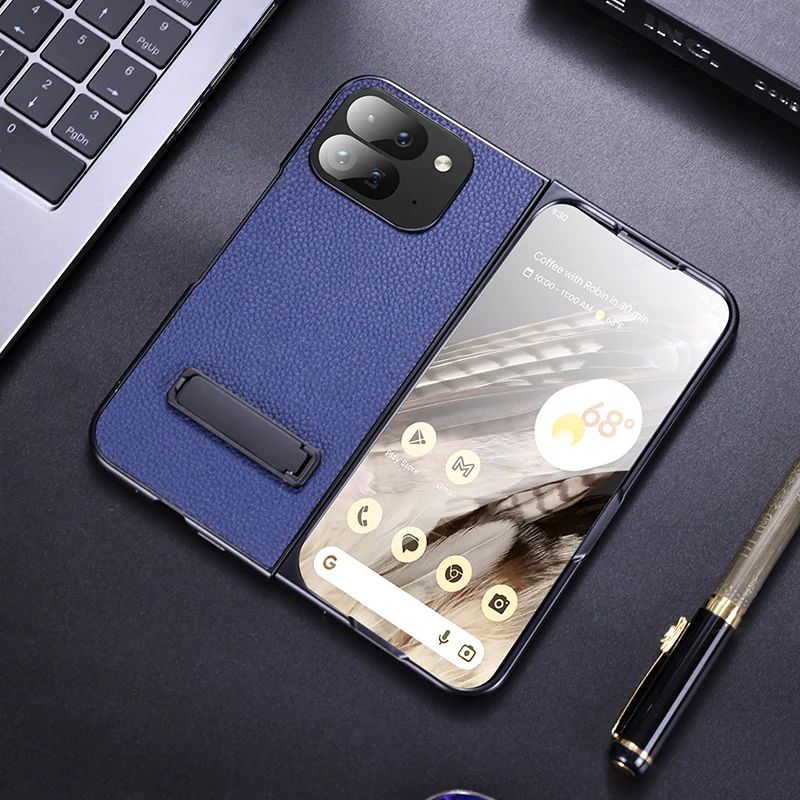 Funda para Google Pixel 9 Pro Fold Fold2 Funda de cuero de grano Litchi de lujo para Pixel 9Pro Fold Thin Funda de parachoques a prueba de golpes