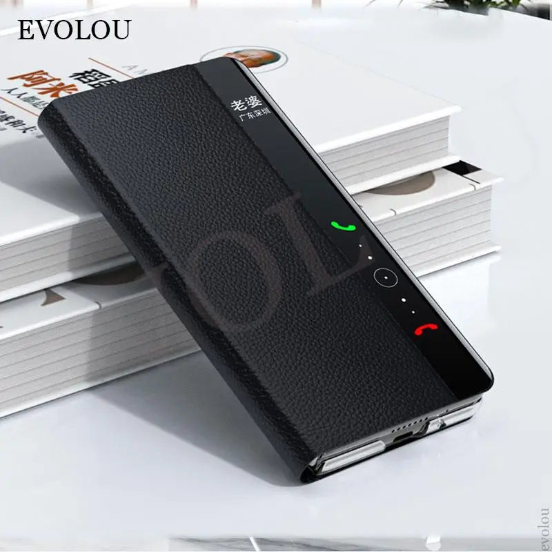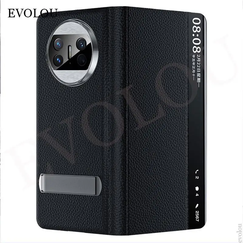 Funda plegable de cuero PU lichi para Huawei Mate X3, cubierta de soporte a prueba de golpes, ventana de visión inteligente, Mate X3