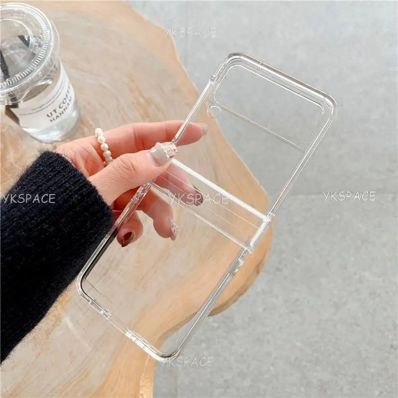 Comprar Funda plegable delgada transparente de protección completa para Samsung Galaxy W25 W24 W23 Z Flip 7 FE 6 5 4 3 5G cubierta dura de PC a prueba de golpes