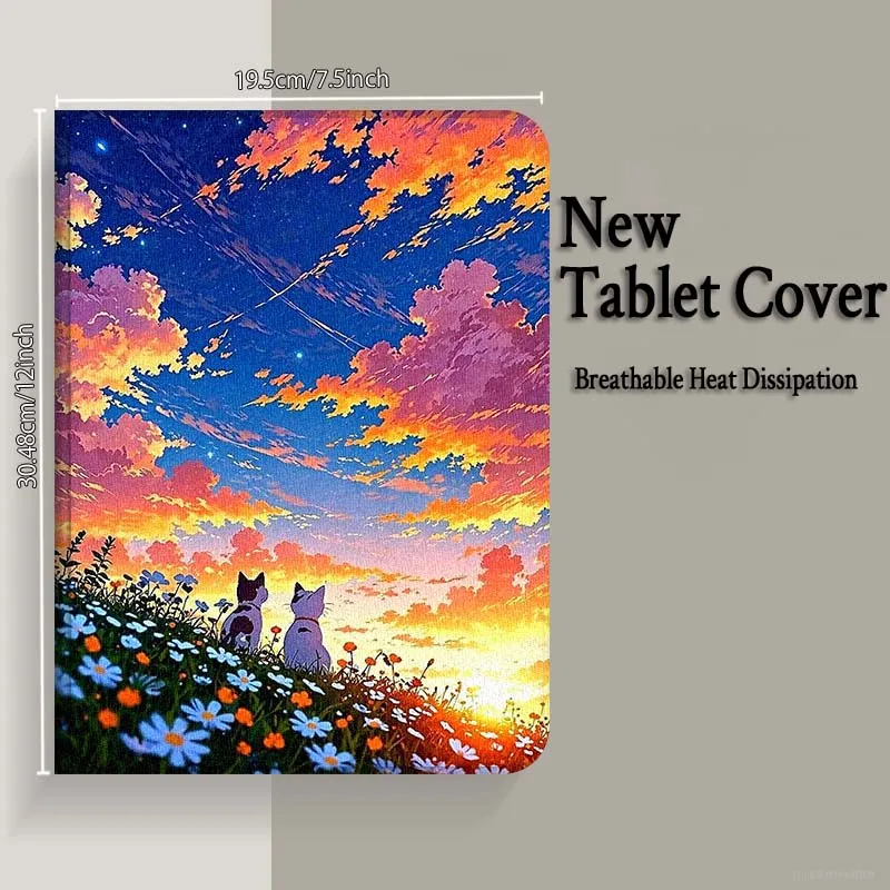 Funda plegable para tableta Samsung Galaxy Tab S9 S10 S6 S7 S8 FE Plus Lite pulgadas con dibujos de gato y puesta de sol