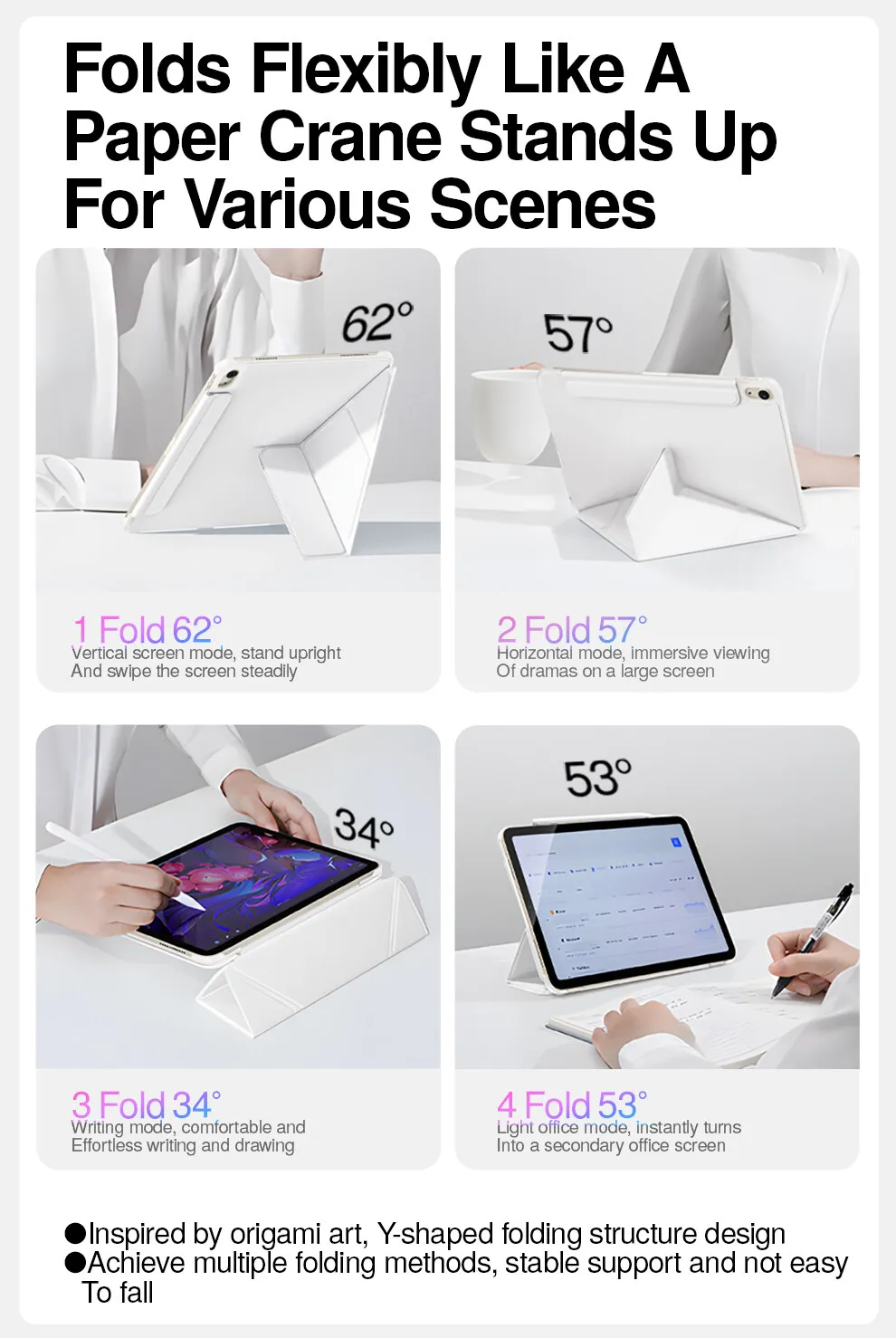 El diseño plegable de esta funda para tableta permite un fácil acceso a todos los botones y puertos, al mismo tiempo que proporciona un soporte para ángulos de visión convenientes.