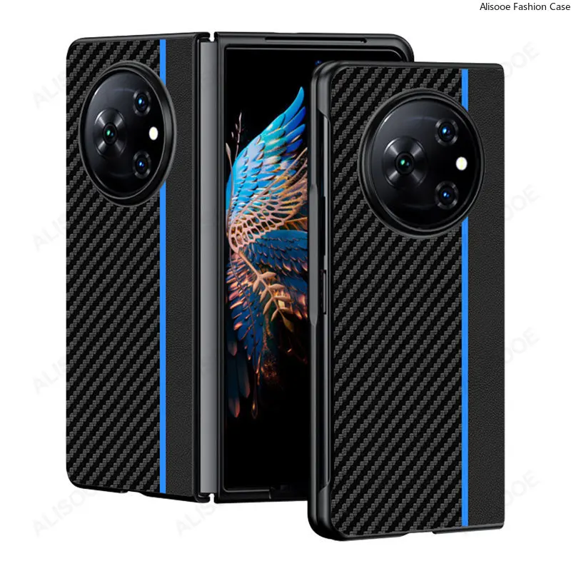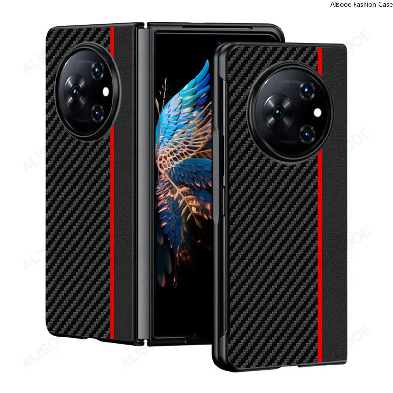 Funda plegable para Tecno Phantom V, cubierta trasera de cuero PU con textura de fibra de carbono, a prueba de golpes, protección 5G