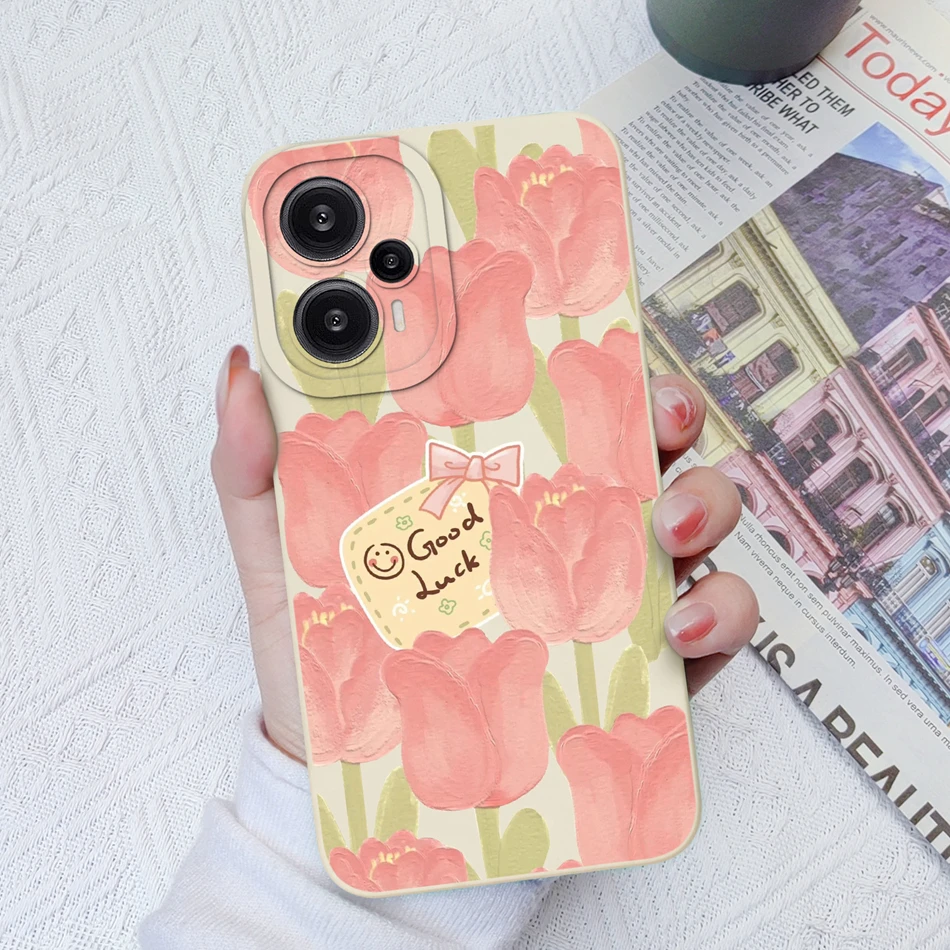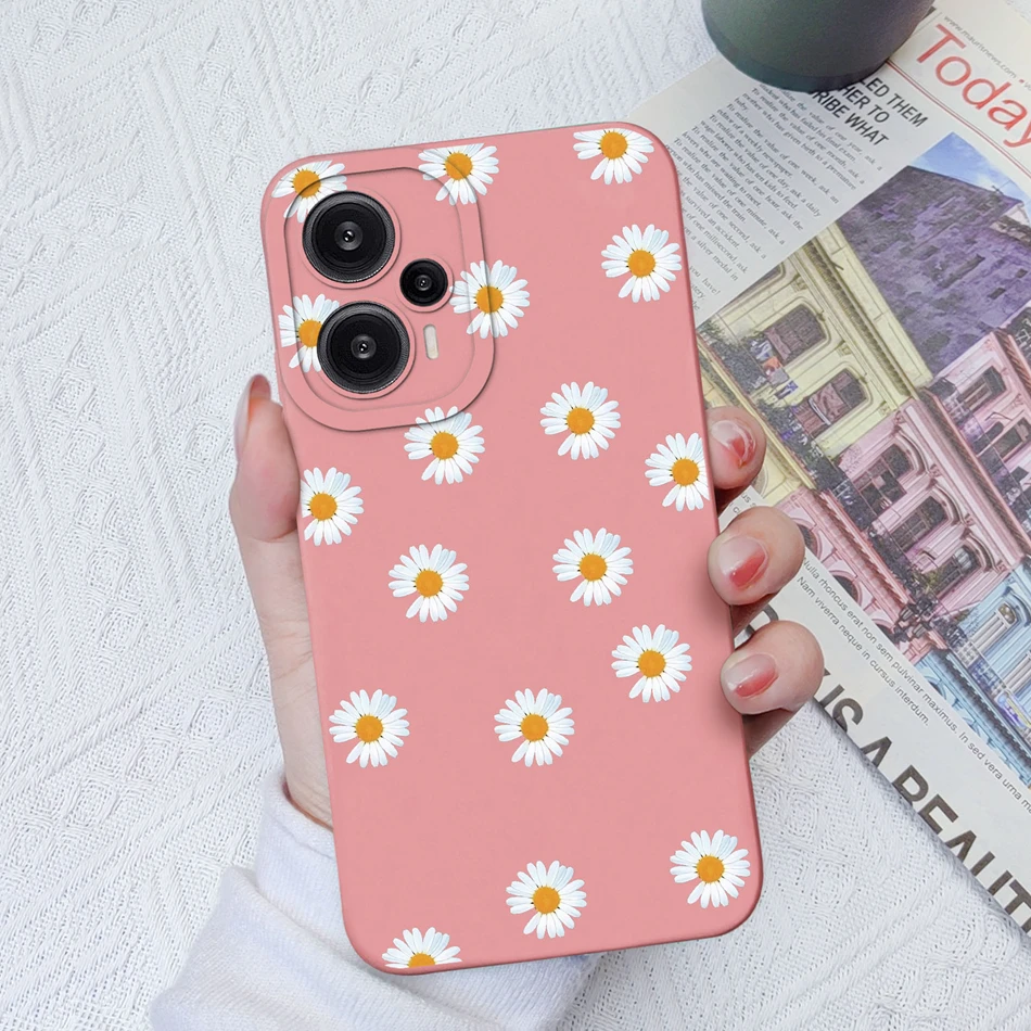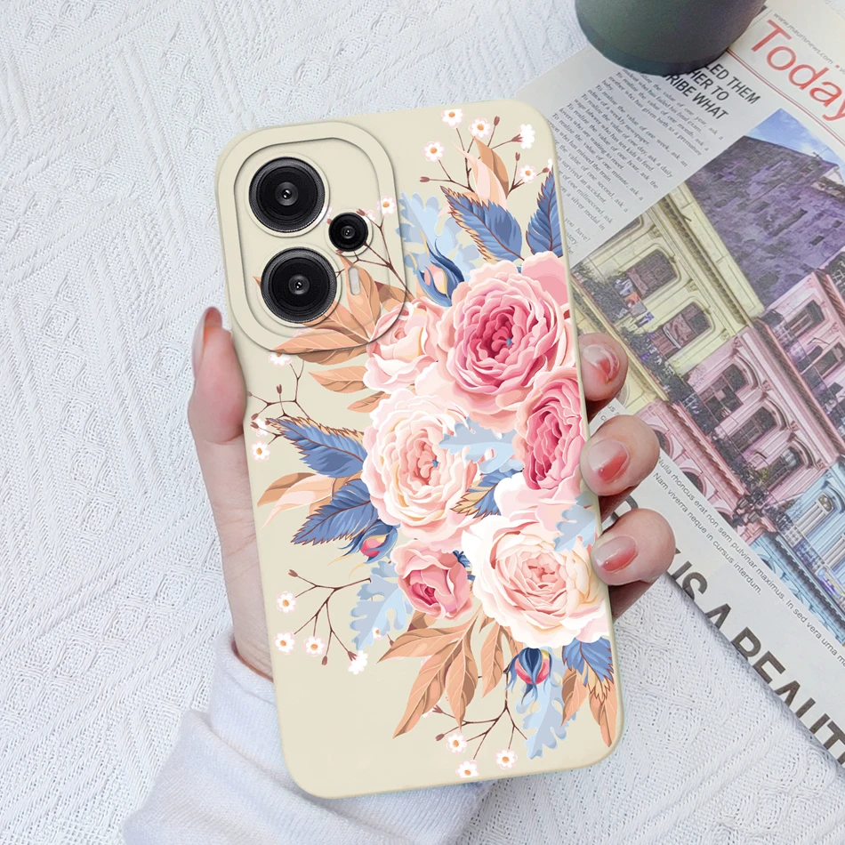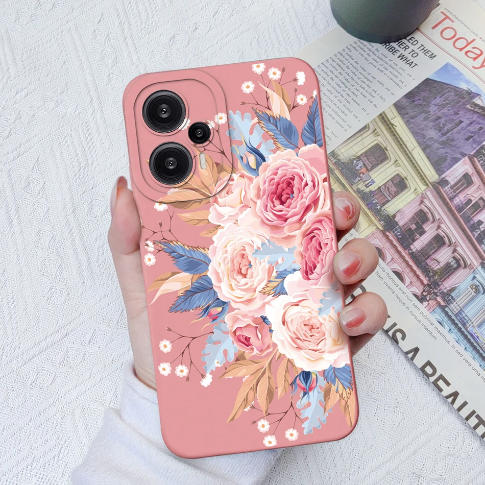 Comprar Funda para Poco F5 Pro, cubierta trasera de protección de lente cuadrada de silicona líquida suave con flores pintadas para Xiaomi Poco F 5 F5Pro