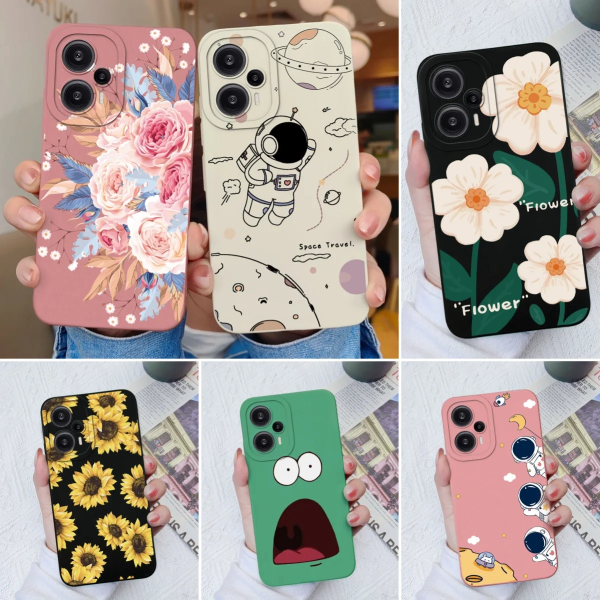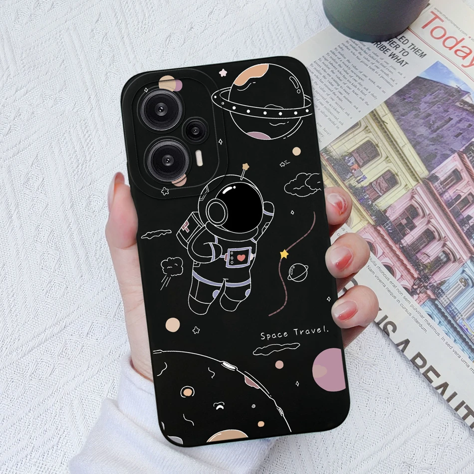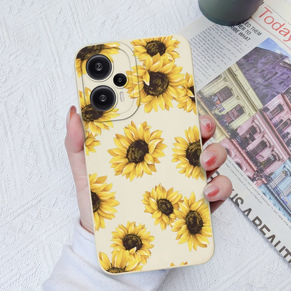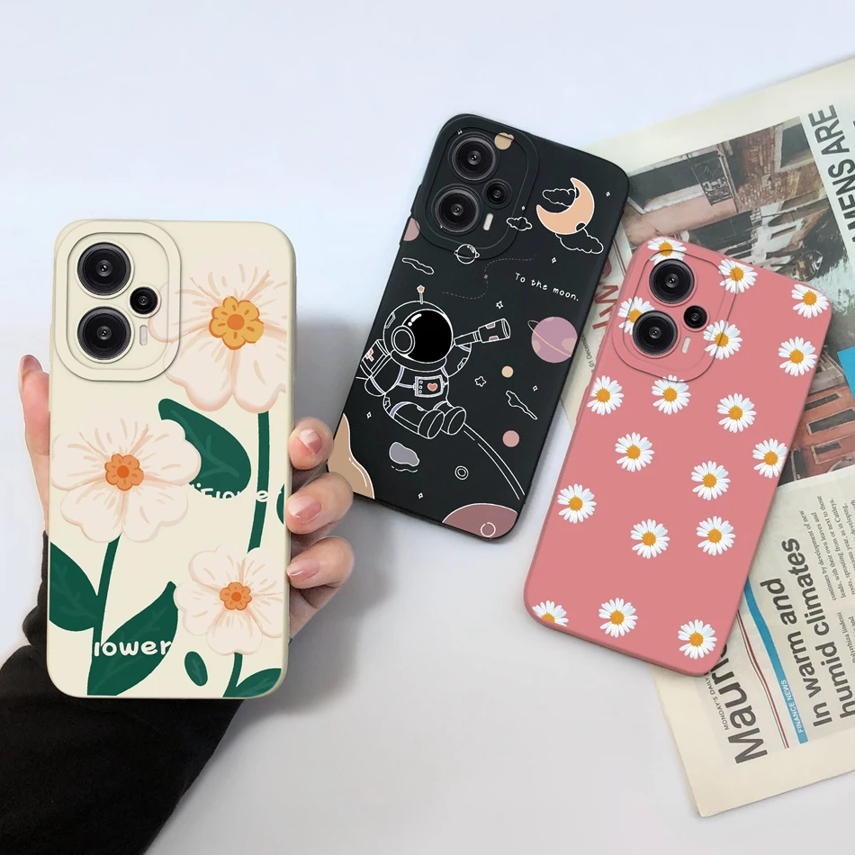 Comprar Funda para Poco F5 Pro, cubierta trasera de protección de lente cuadrada de silicona líquida suave con flores pintadas para Xiaomi Poco F 5 F5Pro