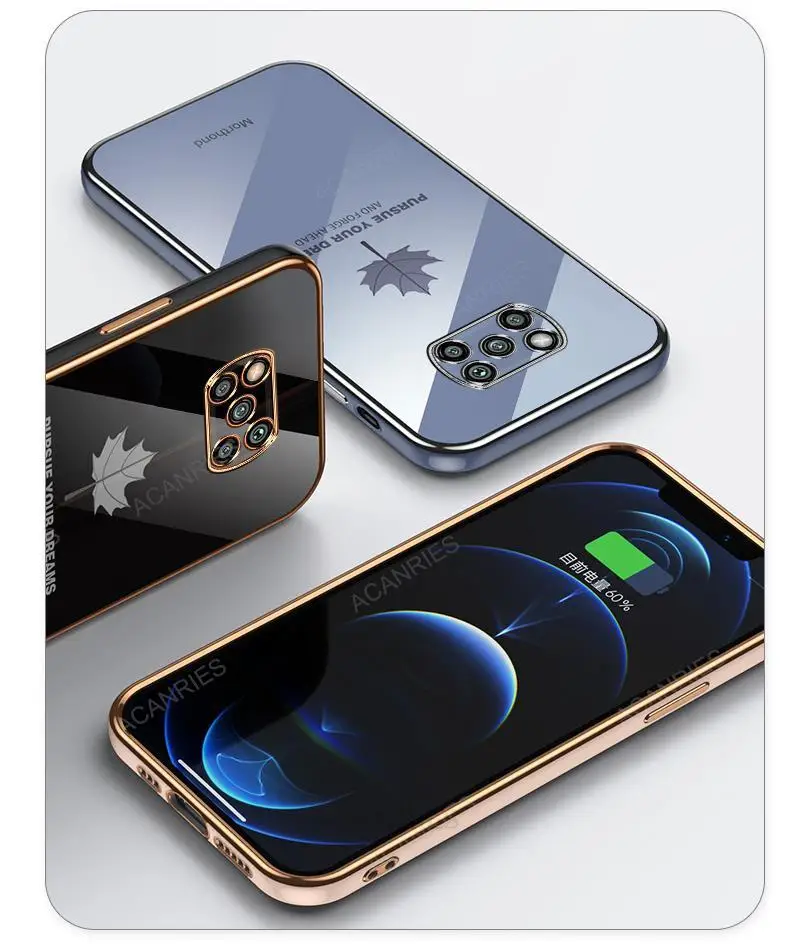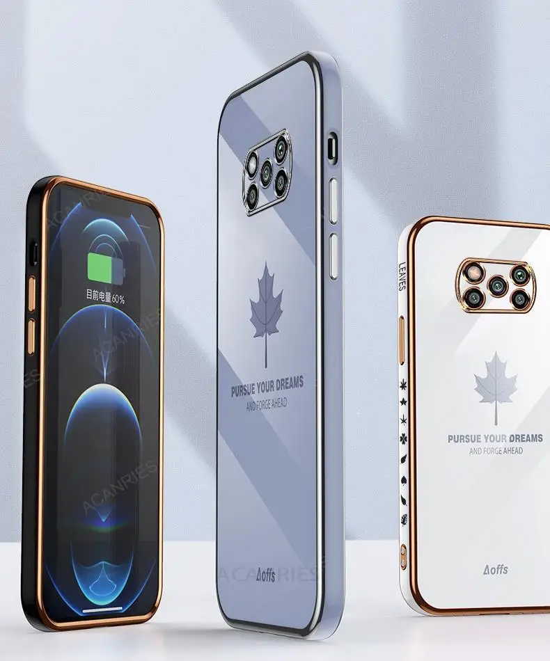 Pocox5 Funda de lujo con cordón de hoja de arce para Xiaomi Mi Poco X5 Pro X3 Nfc X4 X4pro 5g X3pro F3 C40 cubierta de silicona chapada Pokox5