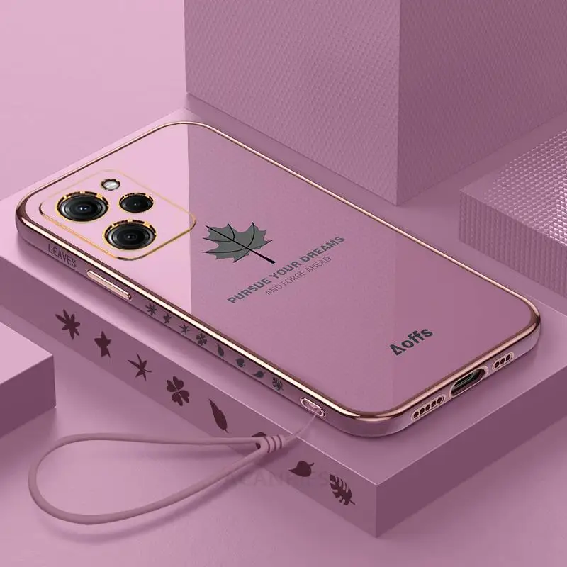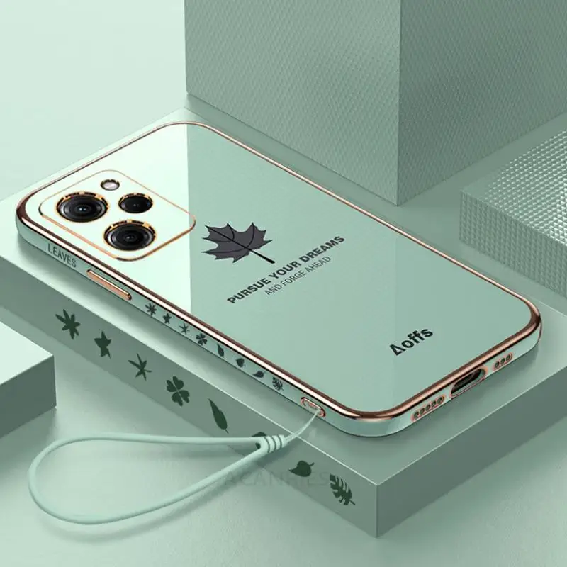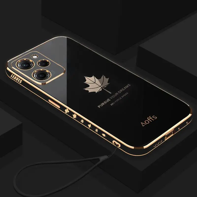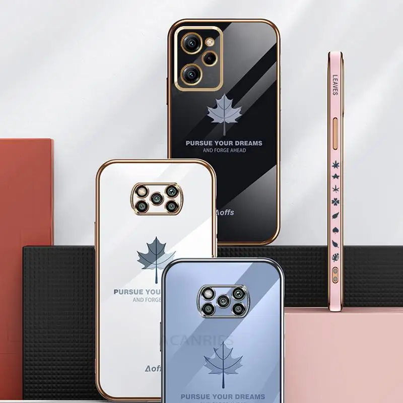 Pocox5 Funda de lujo con cordón de hoja de arce para Xiaomi Mi Poco X5 Pro X3 Nfc X4 X4pro 5g X3pro F3 C40 cubierta de silicona chapada Pokox5