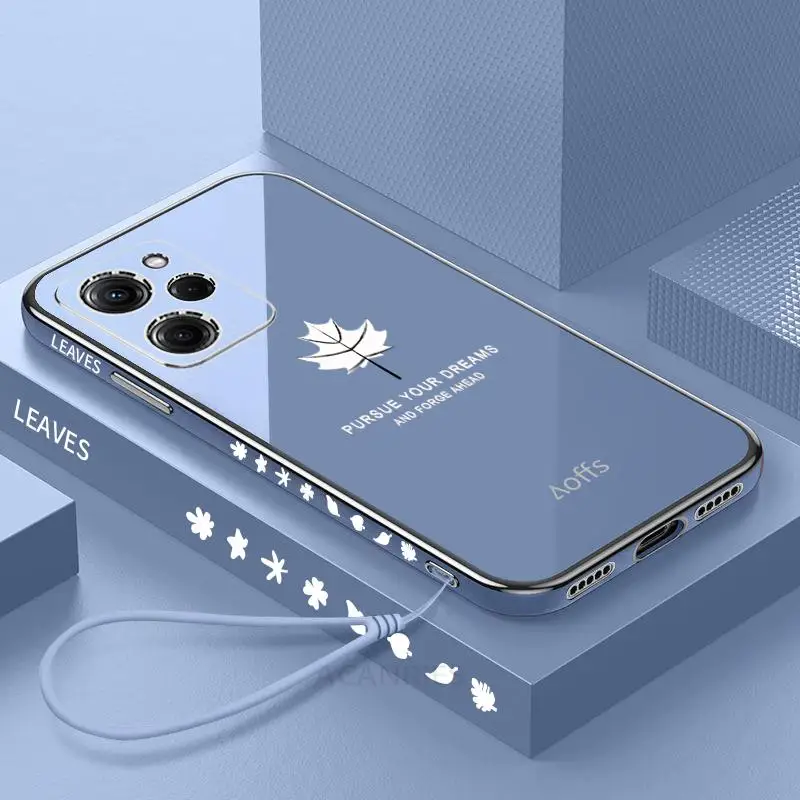 Comprar Funda Pocox5 de lujo con cordón de hoja de arce para Xiaomi Mi Poco X5 Pro X5pro X3 Nfc X3pro, funda de silicona chapada Note 12 12pro 5g