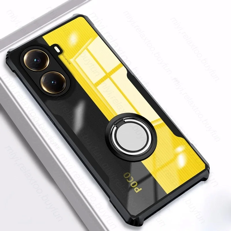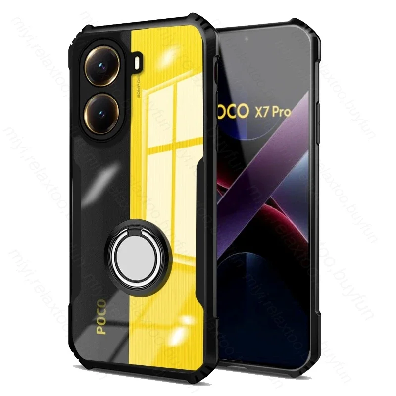 PocoX7Pro Case Clear Acrylic Magnet Holder Ring Shockproof Coque For Xiaomi Poco X7 Pro 5G Armor Cover Poko Little X7Pro X 7 Pro