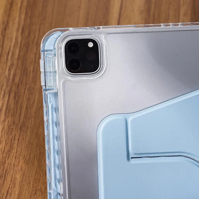 Smart Cover para dormir/despertar automáticamente: el respaldo duro transparente y liviano ofrece una excelente protección contra daños y rayones y la funda de cuero Smart PU activa automáticamente su tableta cuando se abre y la pone en suspensión cuando está cerrada.Diseño de hebilla magnética, puede almacenar su lápiz de segunda aplicación y carga y emparejamiento inalámbricos