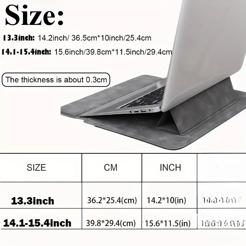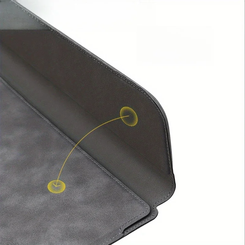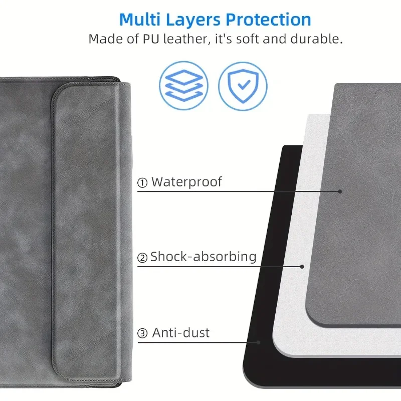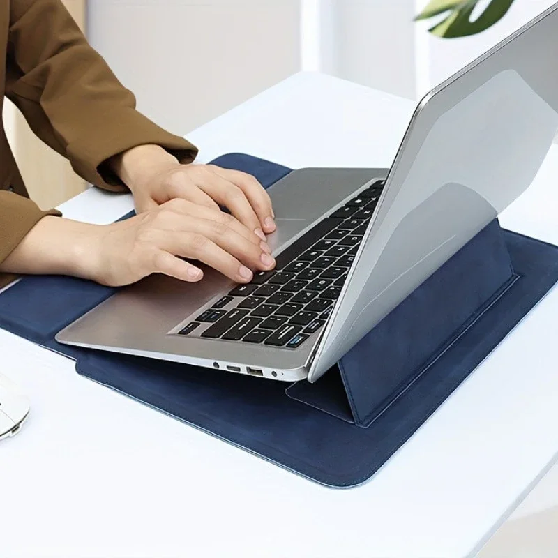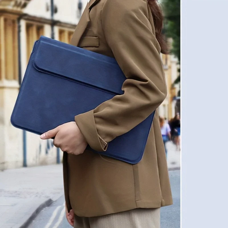 Material: piel sintética Características: 1.Está hecho de cuero pu impermeable de alta calidad y un forro suave, lo que evita que su computadora portátil se raye y dañe diariamente. Proteja su dispositivo de golpes y polvo. La sensación de tacto suave y la superficie lisa facilitan la limpieza. 2.Diseño súper práctico 4 en 1: funda protectora para computadora portátil, un soporte triangular plegable, una muñequera integrada y cierre magnético de doble imán que le permiten trabajar en cualquier momento y en cualquier lugar. 3.El soporte triangular plegable acelera la disipación de calor y prolonga la vida útil de la computadora portátil. Coloque la computadora portátil en el soporte para ajustar el ángulo de visión y aliviar la presión sobre la columna cervical, y la muñequera alivia la fatiga al escribir en sus manos, lo que le permite usar la computadora portátil en la postura más cómoda. El paquete incluye: 1 ud. * funda para portátil Notas: 1.Permita un ligero error debido a la medición manual. 2.Los colores pueden variar según se muestra la diferencia. Gracias por su comprensión.