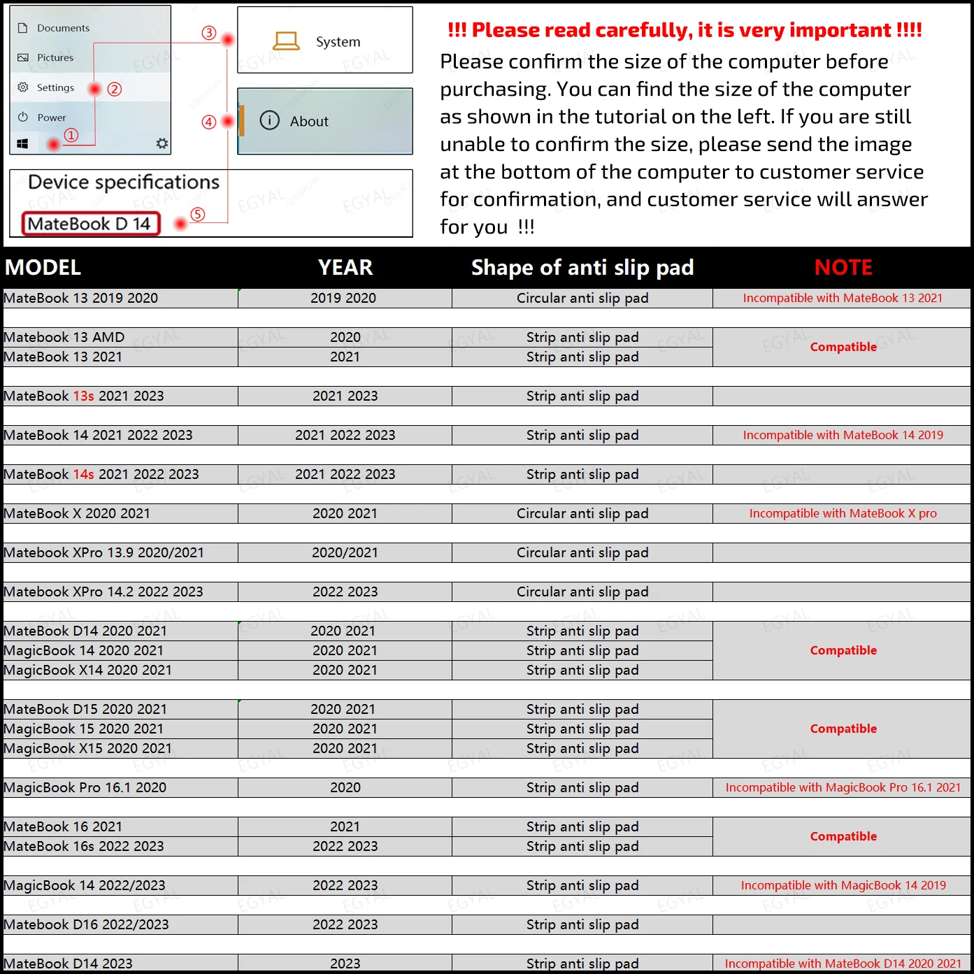 MateBook D14 2023 --------------------Almohadilla antideslizante de tira --------No compatible con MateBook D14 2020 2021