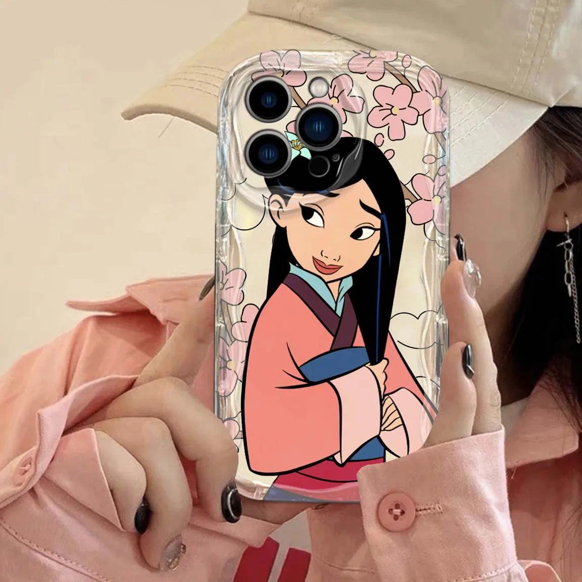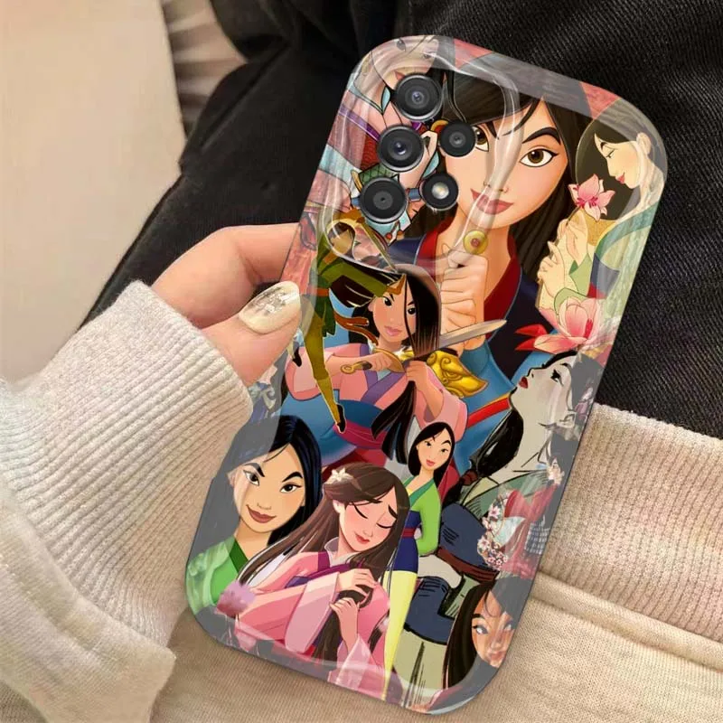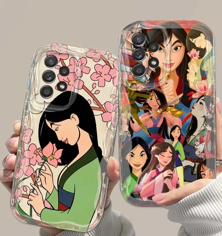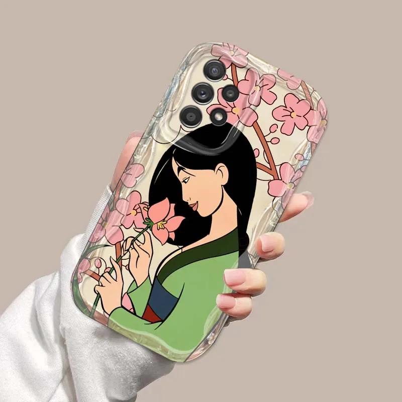 Comprar Funda de princesa Mulan para Samsung A73 A72 A71 A56 A55 A54 A53 A52 A51 A50 A36 A35 A34 funda de teléfono de aceite ondulado