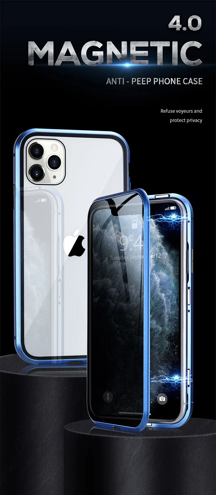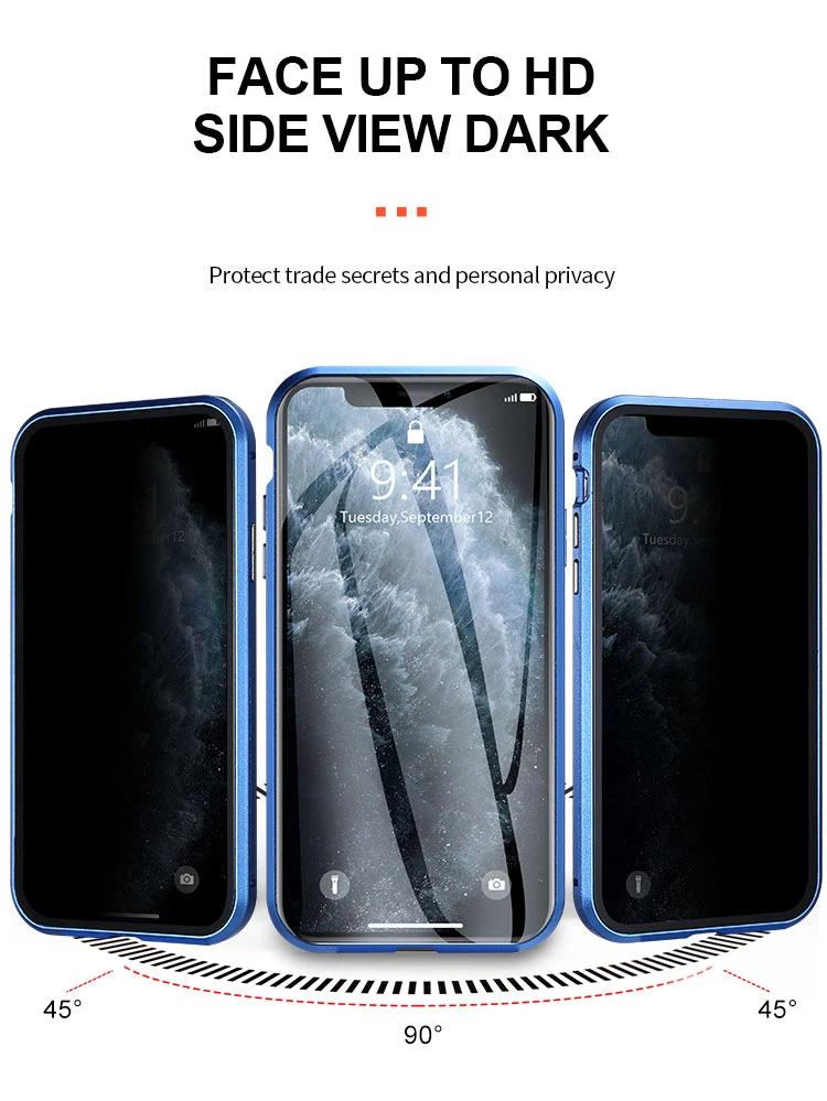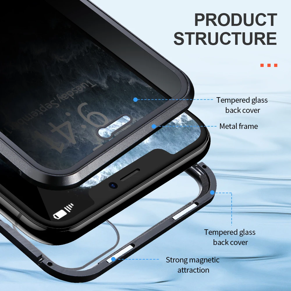 Comprar Funda de privacidad magnética para iPhone 11, 12, 13, 14 Pro Max, cristal templado antiespía 360, XR funda protectora para Iphone, X, XS, Max, 7, 8 Plus