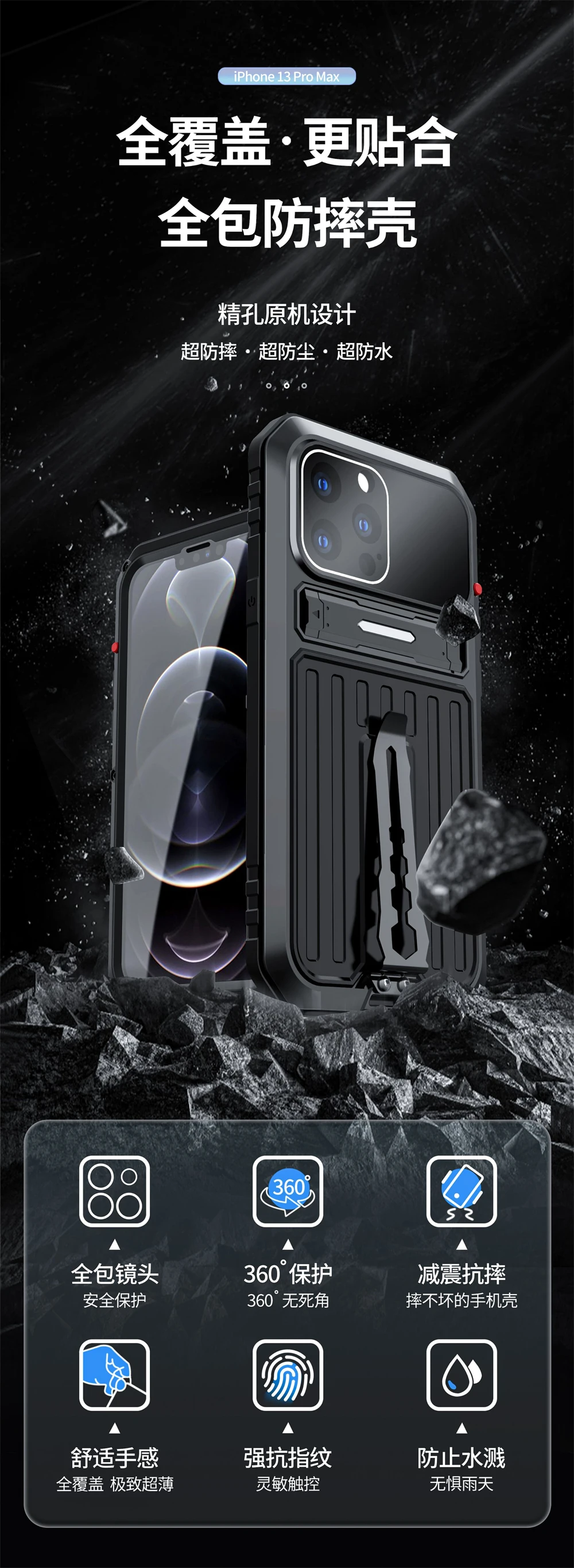 Comprar Funda de protección de alta resistencia para iPhone, carcasa a prueba de golpes de grado militar IP68, con tanque de Metal 360, para modelos 13, 12 Pro Max