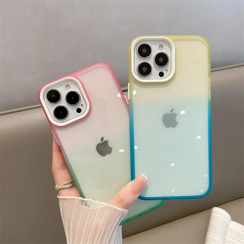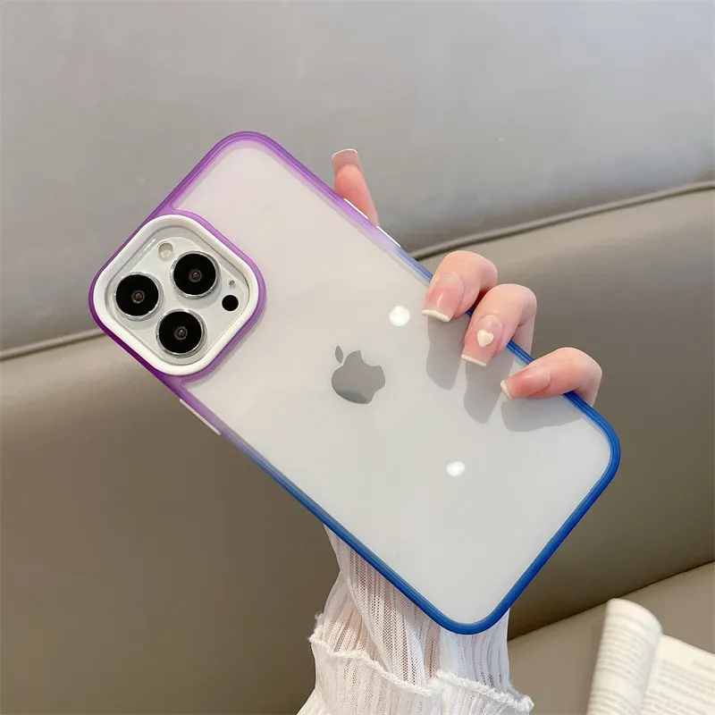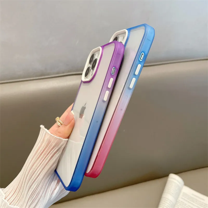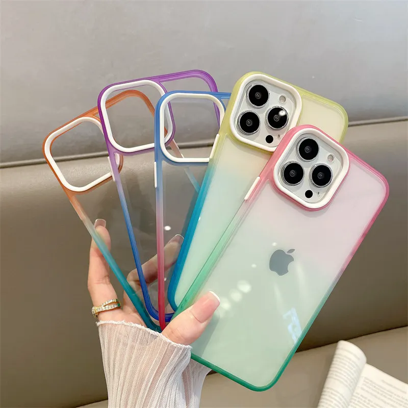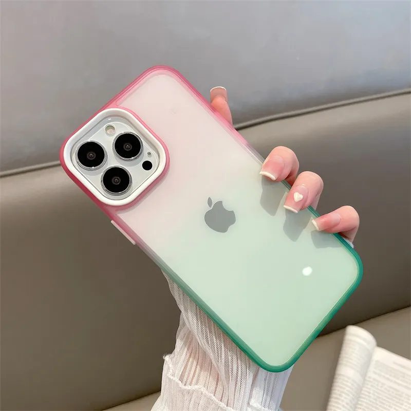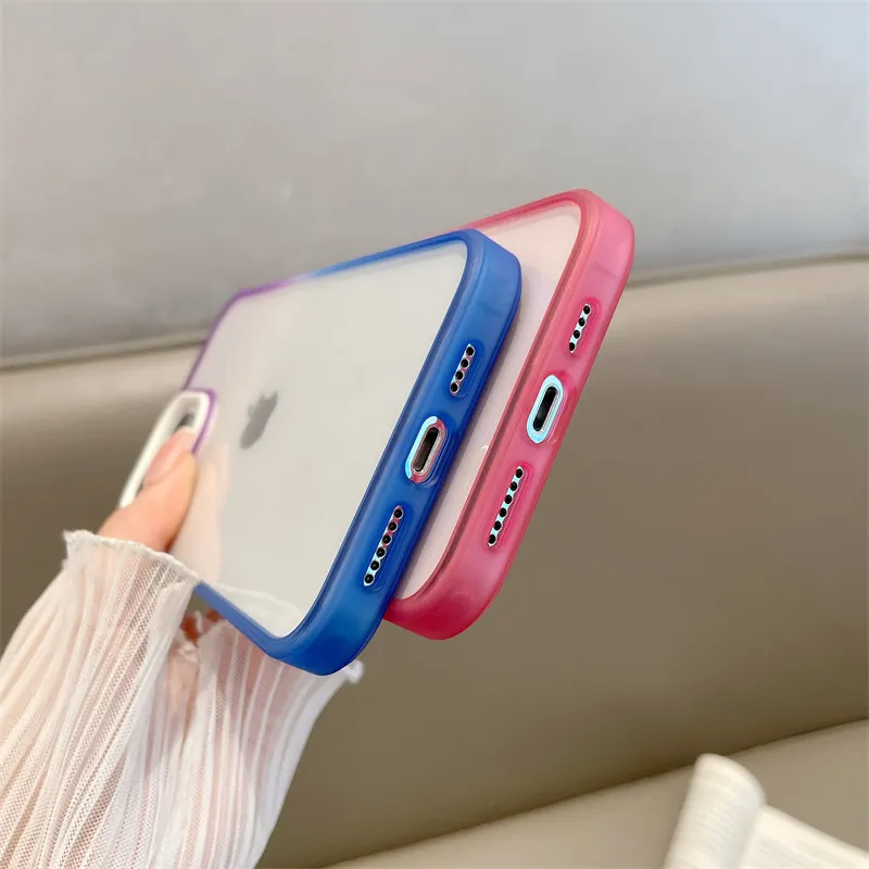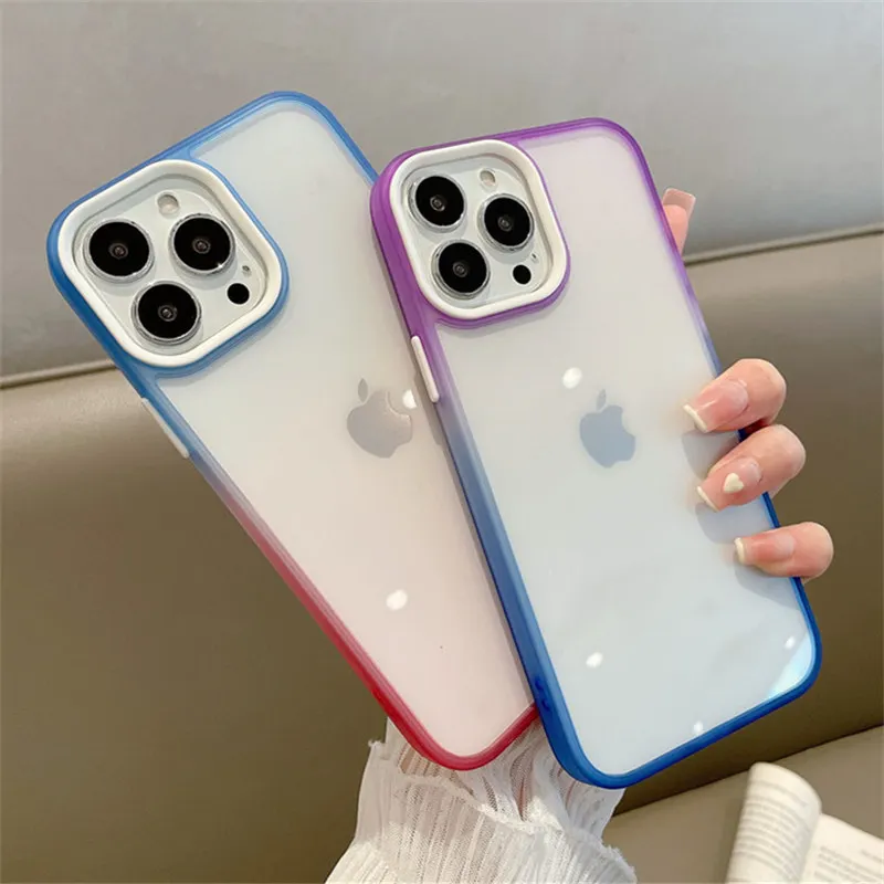 Comprar Funda de protección completa para iPhone, carcasa suave de acrílico gradiente de colores contrastantes para modelos 12, 11 Pro Max y 11