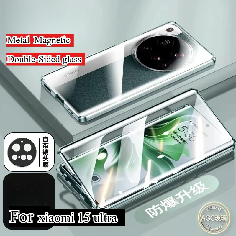 Funda protectora de adsorción magnética completa de Metal 360 para Xiaomi 15 cubierta dura de vidrio templado Ultra de doble cara para Xiaomi 15ultra